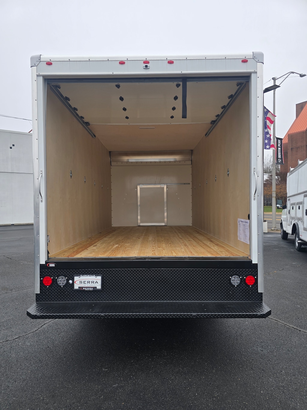 FULL BOX TRUCK UPFIT INCLUDED IN SALE PRICE OF $53,300! Summit White 2025 Chevrolet Express 3500 Work Van For sale at Serra Chevrolet Clarksville is well equipped: Driver Convenience Package (Cruise Control and Tilt Steering Wheel), Power Convenience Package (Power Door Locks w/Lock-Out Protection and Power Windows), Preferred Equipment Group 1WT, 2 Speakers, 3.73 Rear Axle Ratio, 4-Wheel Disc Brakes, ABS brakes, Air Conditioning, AM/FM radio, Antenna Equipment, Body Soft-Mount Donut & Bolt, Delay-off headlights, Driver & Front Passenger High-Back Bucket Seats, Driver door bin, Driver's Seat Mounted Armrest, Dual front impact airbags, Dual Rear Wheel Configuration, Dual rear wheels, Electronic Stability Control, Engine Cover Console w/Swing-Out Storage Bin, Front anti-roll bar, Front Bucket Seats, Front Chrome Bumper w/Step-Pad, Front wheel independent suspension, Fuel Tank Capacity Approx. 57 Gallons (215.7L), Fully automatic headlights, Heavy-Duty Locking Rear Differential, Manual Day/Night Inside Rear-View Mirror, Occupant sensing airbag, Passenger cancellable airbag, Passenger door bin, Passenger seat mounted armrest, Power steering, Radio: AM/FM Stereo w/MP3 Player & Digital Clock, Reclining High-Back Bucket Seats w/Inboard Armrests, Tachometer, Traction control, Trip computer, Variably intermittent wipers, Vinyl Seat Trim, Voltmeter, Wheels: 16 x 6.5 8-Lug Painted Steel HD (6), and Wide-Stance Sail Panel Mounted Outside Mirrors.