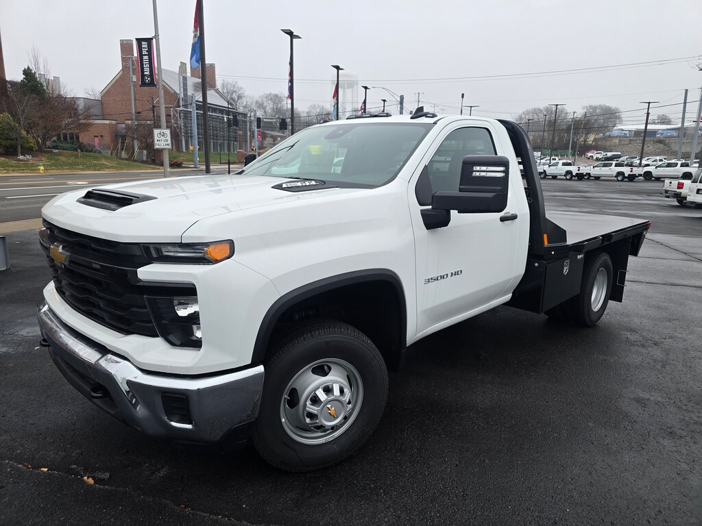 FLAT BED UPFIT INCLUDED IN SALE PRICE OF $55,472! Summit White 2025 Chevrolet Silverado 3500HD Work Truck For sale at Serra Chevrolet Clarksville is well equipped: Preferred Equipment Group 1WT (170 Amp Alternator, 2-Speed Electronic Shift Transfer Case, 3.5 Diagonal Monochromatic Display DIC, Black Front Bumper, Black Mirror Caps, Bluetooth® For Phone, Compass Located In Instrument Cluster, Manual Tilt-Wheel Steering Column, Rubberized-Vinyl Floor Covering, Solar Absorbing Tinted Glass, and Steering Wheel Mounted Electronic Cruise Control), Snow Plow Prep Package (220 Amp Alternator), Suspension Package, WT Convenience Package (Deep-Tinted Glass and Electric Rear-Window Defogger), 10-Speed Automatic, 4WD, Jet Black Vinyl, 120-Volt (400 Watts) Interior Power Outlet, 17 Painted Steel Wheels, 18 Painted Steel Wheels, 2 Speakers, 2-Speaker Audio System Feature, 3.73 Rear Axle Ratio, 4-Way Manual Driver Seat Adjuster, 4-Way Manual Passenger Seat Adjuster, 4-Wheel Disc Brakes, ABS brakes, Air Conditioning, AM/FM radio, Auto High-beam Headlights, Auto-Dimming Inside Rear-View Mirror, Brake assist, Compass, Delay-off headlights, Driver door bin, Dual front impact airbags, Dual front side impact airbags, Dual rear wheels, Electronic Stability Control, Front 40/20/40 Split-Bench Seat, Front anti-roll bar, Front Center Armrest w/Storage, Front Chrome Bumper, Front Grille Bar w/Black Mesh Inserts, Front License Plate Kit, Front reading lights, Front wheel independent suspension, Fully automatic headlights, Heavy-Duty 80 Amp-Hr Battery, Illuminated entry, Low tire pressure warning, Manual Tilt Inside Rearview Mirror, Occupant sensing airbag, OnStar Services Capable, Outside temperature display, Overhead airbag, Overhead console, Panic alarm, Passenger door bin, Passenger vanity mirror, Perimeter Lighting, Power steering, Power windows, Power-Adjustable Outside Mirrors, Radio: Chevrolet Infotainment 3 System, Remote keyless entry, Speed control, Tachometer, Tilt steering wheel, Traction control, Trip computer, Upfitter Switch Kit (5), Variably intermittent wipers, Vinyl Seat Trim, and Voltmeter.
