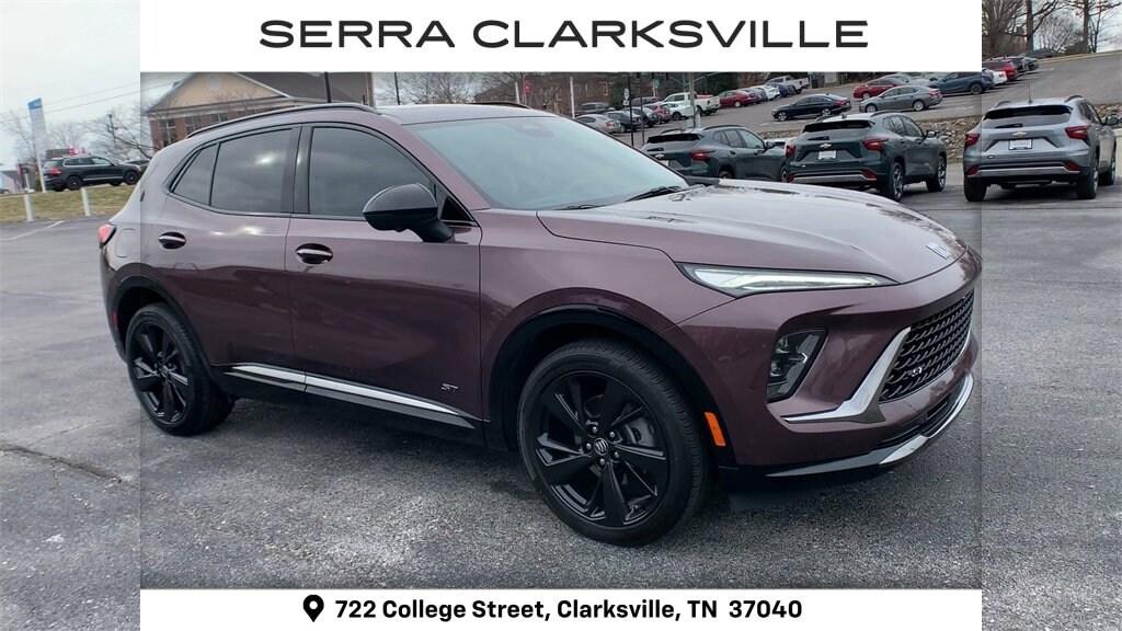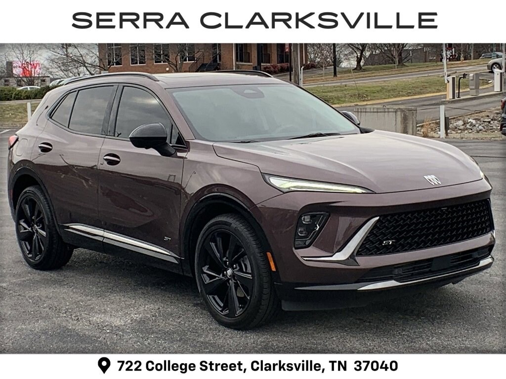 The Pre-Owned 2025 Buick Envision Sport Touring with 2.0L Turbocharged at Serra Clarksville. Well equipped: Comfort and Convenience Package (3-Channel Programmable Universal Home Remote, Air Quality Indicator Sensor, Automatic Air Recirculation, Dual-Zone Automatic Climate Control Air Conditioning, Hands-Free Power Programmable Liftgate, Heated Driver and Front Passenger Seats, and Heated Steering Wheel), Preferred Equipment Group 1SL, 3.47 Final Drive Axle Ratio, 30 Diagonal LCD Display, 4-Wheel Disc Brakes, 9 Speakers, ABS brakes, Air Conditioning, Alloy wheels, AM/FM radio: SiriusXM, Auto High-beam Headlights, Auto-dimming door mirrors, Auto-dimming Rear-View mirror, Automatic temperature control, Bose Premium 9-Speaker Audio System Feature, Brake assist, Bumpers: body-color, Compass, Delay-off headlights, Driver 4-Way Power Lumbar Seat Adjuster, Driver 8-Way Power Seat Adjuster, Driver door bin, Driver vanity mirror, Dual front impact airbags, Dual front side impact airbags, Electronic Stability Control, Emergency communication system: OnStar and Buick connected services capable, Exterior Parking Camera Rear, Four wheel independent suspension, Front anti-roll bar, Front Bucket Seats, Front Center Armrest, Front Passenger 6-Way Manual Seat Adjuster, Front reading lights, Fully automatic headlights, Heads-Up Display, Heated door mirrors, Illuminated entry, Knee airbag, Leather steering wheel, Low tire pressure warning, Memory seat, Navigation System, Occupant sensing airbag, Outside temperature display, Overhead airbag, Overhead console, Panic alarm, Passenger door bin, Passenger vanity mirror, Perforated Leather-Appointed Seat Trim, Power door mirrors, Power driver seat, Power Liftgate, Power Panoramic Tilt-Sliding Moonroof, Power steering, Power windows, Premium audio system: Buick Infotainment System, Radio data system, Radio: Infotainment Center, Rear anti-roll bar, Rear reading lights, Rear seat center armrest, Rear window defroster, Rear window wiper, Remote keyless entry, Security system, SiriusXM Trial Subscription, Speed control, Split folding rear seat, Spoiler, Sport steering wheel, Steering wheel mounted audio controls, Telescoping steering wheel, Tilt steering wheel, Traction control, Trip computer, Variably intermittent wipers, Wheels: 20 Carbon Flash Metallic Alloy, and Wireless Apple CarPlay/Wireless Android Auto.