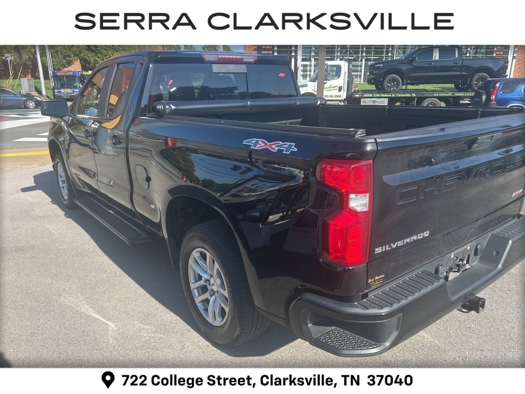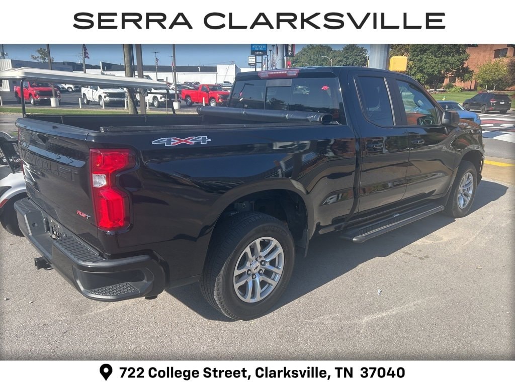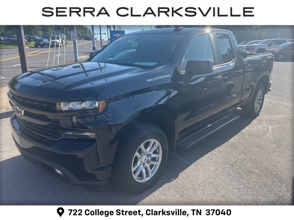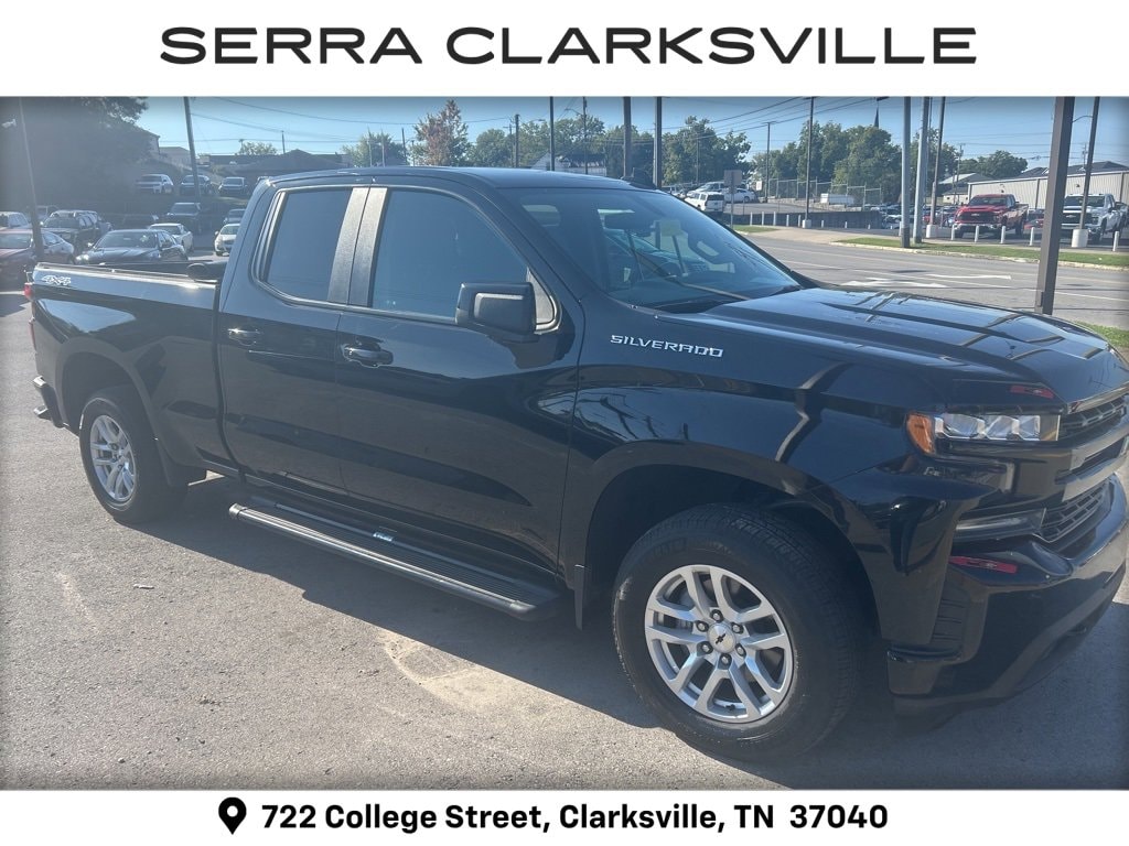 The Pre-Owned 2019 Chevrolet Silverado 1500 RST with EcoTec3 5.3L V8 at Serra Clarksville. Well equipped: All-Star Edition (Heavy-Duty Rear Locking Differential), Convenience Package (10-Way Power Driver Seat w/Lumbar, Dual-Zone Automatic Climate Control, Heated Driver & Front Passenger Seats, Heated Steering Wheel, Leather Wrapped Steering Wheel, and Manual Tilt/Telescoping Steering Column), Convenience Package II (120-Volt Bed Mounted Power Outlet, 120-Volt Instrument Panel Power Outlet, 2 USB Ports, HD Radio, HD Rear Vision Camera, Power Sliding Rear Window w/Rear Defogger, Premium Bose 7-Speaker Sound System, Radio: Chevrolet Infotainment 3 Plus System, SiriusXM Radio, and Universal Home Remote), Convenience Package w/Buckets Seats (Floor Mounted Console and Front Bucket Seats), Leather Package (Leather Appointed Seat Trim), Preferred Equipment Group 1SP (12-Volt Rear Auxiliary Power Outlet, 2 USB Ports (First Row), 4-Way Manual Driver Seat Adjuster, 4.2 Diagonal Color Display Driver Info Center, 6-Speaker Audio System, Bluetooth® For Phone, Body Color Grille, Chevrolet Connected Access, Chevrolet w/4G LTE, Color-Keyed Carpeting Floor Covering, Compass, Deep-Tinted Glass, Electric Rear-Window Defogger, Electrical Lock Control Steering Column, Electronic Cruise Control, Front Frame-Mounted Black Recovery Hooks, Front LED Fog Lamps, Front Rubberized Vinyl Floor Mats, High Gloss Black Mirror Caps, Keyless Open & Start, LED Cargo Area Lighting, Manual Tilt Wheel Steering Column, OnStar & Chevrolet Connected Services Capable, Power Door Locks, Power Front Windows w/Driver Express Up/Down, Power Front Windows w/Passenger Express Down, Power Rear Windows w/Express Down, Rear 60/40 Folding Bench Seat (Folds Up), Rear Dual USB Charging-Only Ports, Rear Rubberized-Vinyl Floor Mats, Rear Vision Camera, Remote Vehicle Starter System, Single-Zone Manual/Semi-Automatic Air Conditioning, Steering Wheel Audio Controls, Theft Deterrent System (Unauthorized Entry), and Urethane Steering Wheel), Trailering Package (Hitch Guidance), 8-Speed Automatic, 4WD, Black Leather, 170 Amp Alternator, 220 Amps Alternator, 3.23 Rear Axle Ratio, 4-Wheel Disc Brakes, 40/20/40 Front Split-Bench Seat, 6 Speakers, ABS brakes, Air Conditioning, Alloy wheels, AM/FM radio, Apple CarPlay/Android Auto, Auxiliary External Transmission Oil Cooler, Brake assist, Bumpers: body-color, Cloth Seat Trim, Delay-off headlights, Driver door bin, Driver vanity mirror, Dual front impact airbags, Dual front side impact airbags, Electronic Stability Control, External Engine Oil Cooler, Front anti-roll bar, Front Center Armrest w/Storage, Front fog lights, Front reading lights, Front wheel independent suspension, Fully automatic headlights, Heated door mirrors, Heavy Duty Suspension, Illuminated entry, Integrated Trailer Brake Controller, Low tire pressure warning, Occupant sensing airbag, Outside temperature display, Overhead airbag, Overhead console, Panic alarm, Passenger door bin, Passenger vanity mirror, Power door mirrors, Power steering, Power windows, Premium audio system: Chevrolet Infotainment System 3, Radio data system, Radio: Chevrolet Infotainment 3 System, Rear reading lights, Rear step bumper, Rear window defroster, Remote keyless entry, Security system, Speed control, Speed-sensing steering, Split folding rear seat, Steering wheel mounted audio controls, Tachometer, Tilt steering wheel, Traction control, Trip computer, Variably intermittent wipers, Voltmeter, and Wheels: 18 x 8.5 Bright Silver Painted Aluminum.