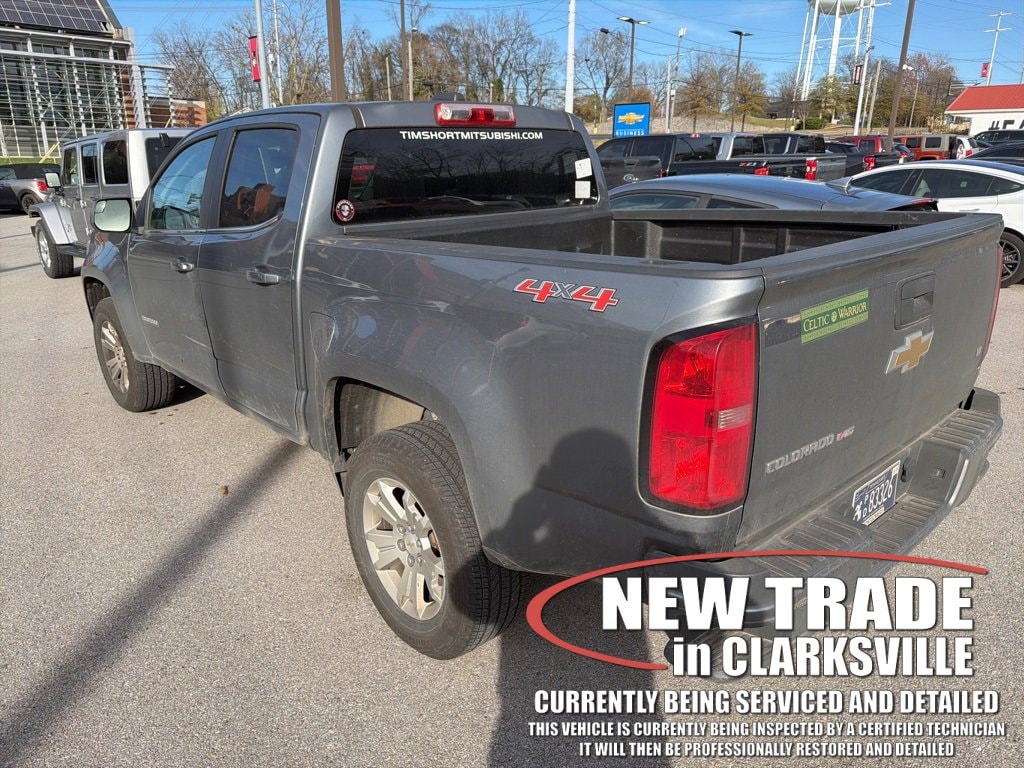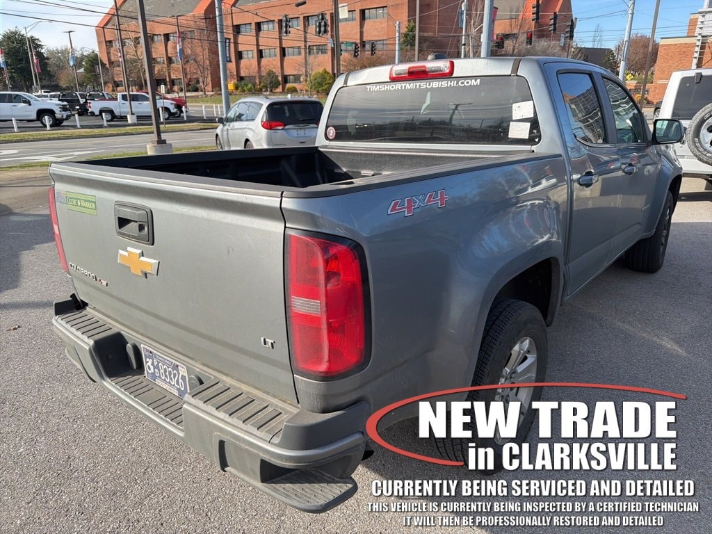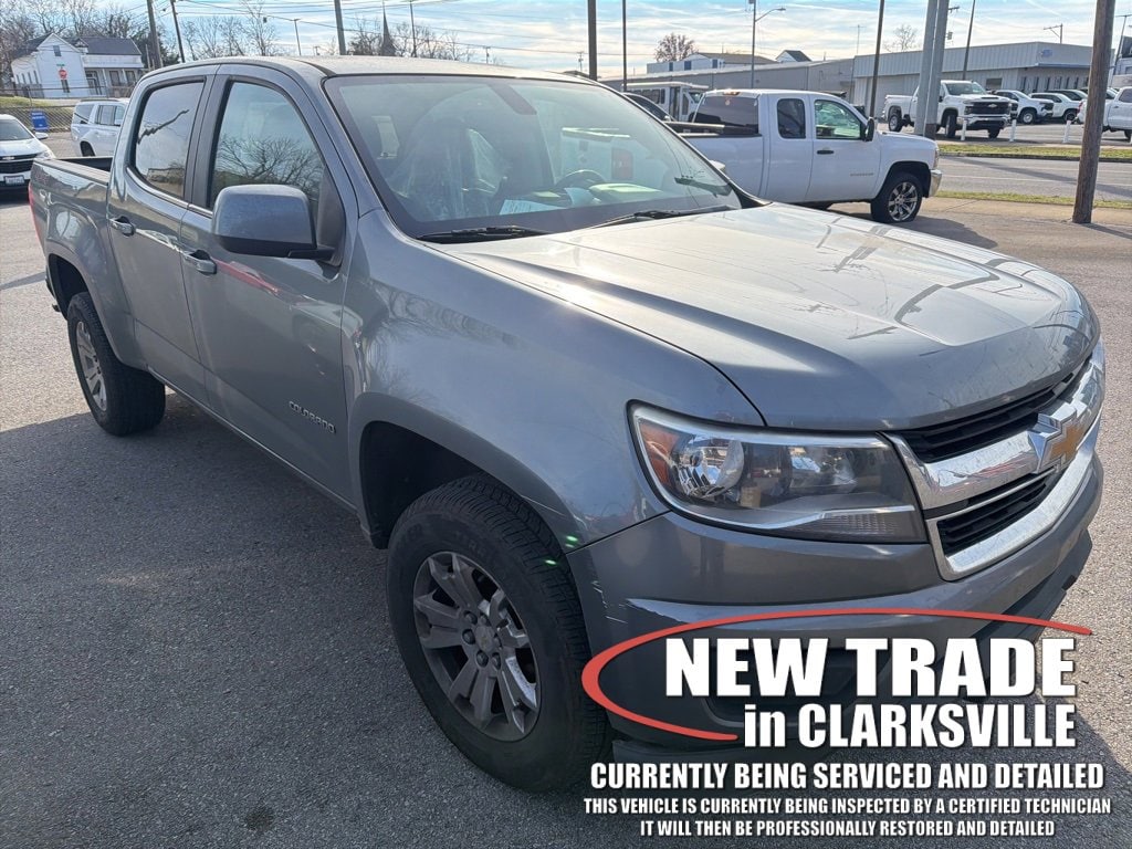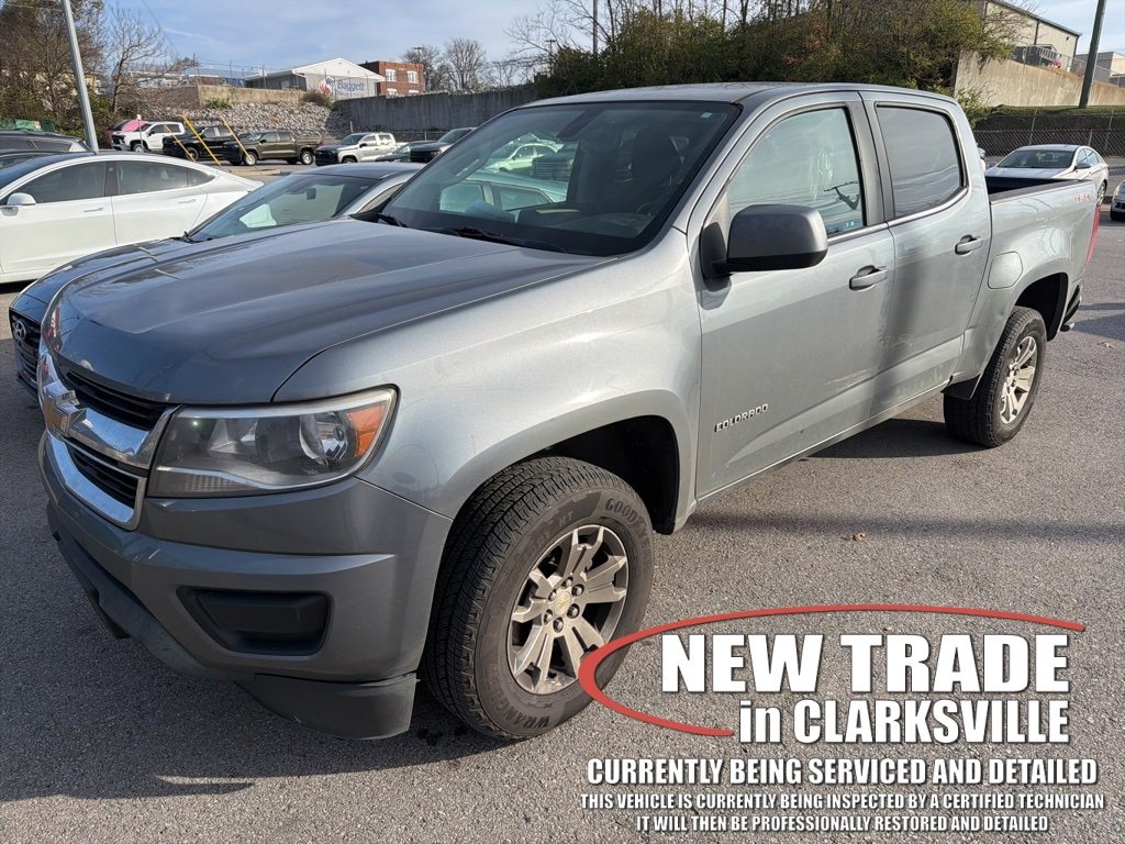The Pre-Owned 2020 Chevrolet Colorado LT with V6 at Serra Clarksville. Well equipped: Preferred Equipment Group 4LT, 4WD, 3.42 Rear Axle Ratio, 4-Wheel Disc Brakes, 6 Speakers, 6-Speaker Audio System Feature, ABS brakes, Air Conditioning, Alloy wheels, AM/FM radio: SiriusXM, Apple CarPlay, Bumpers: body-color, Cloth Seat Trim, Compass, Delay-off headlights, Driver 6-Way Power Seat Adjuster, Driver door bin, Driver vanity mirror, Dual front impact airbags, Dual front side impact airbags, Electronic Stability Control, Exterior Parking Camera Rear, Front anti-roll bar, Front Bucket Seats, Front Center Armrest, Front License Plate Kit, Front reading lights, Front wheel independent suspension, Fully automatic headlights, HD Radio, Illuminated entry, Low tire pressure warning, Occupant sensing airbag, Outside temperature display, Overhead airbag, Overhead console, Panic alarm, Passenger door bin, Passenger vanity mirror, Power door mirrors, Power driver seat, Power steering, Power windows, Premium audio system: Chevrolet Infotainment 3 Plus, Radio data system, Radio: Chevrolet Infotainment 3 Plus System, Rear reading lights, Rear seat center armrest, Rear step bumper, Remote keyless entry, Security system, SiriusXM Radio, Speed control, Speed-sensing steering, Steering wheel mounted audio controls, Tachometer, Telescoping steering wheel, Tilt steering wheel, Traction control, Trip computer, Variably intermittent wipers, and Wheels: 17 x 8 Blade Silver Metallic Cast Alloy.