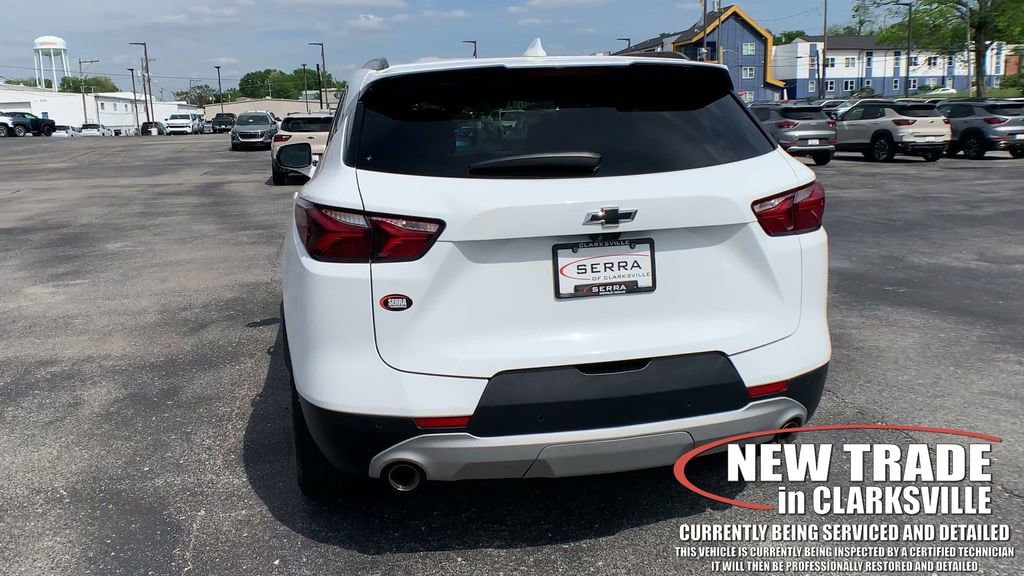 The Pre-Owned 2022 Chevrolet Blazer LT with 3.6L V6 SIDI at Serra Clarksville. Well equipped: Interior Protection Package (LPO) (Premium All-Weather Cargo Mat (LPO) and Premium All-Weather Floor Mats), Preferred Equipment Group 3LT (6-Way Power Front Passenger Seat Adjuster, Black Roof Rails, Heated Driver & Front Passenger Seats, Inside Rear-View Auto-Dimming Mirror, Lane Change Alert w/Side Blind Zone Alert, Outside Heated Power-Adjustable Body-Color Mirrors, Rear Cross Traffic Alert, Rear Park Assist w/Audible Warning, Rear Power Programmable Liftgate, Remote Start, and Universal Home Remote), Sound & Technology Package (120-Volt Power Outlet, 2 USB Data Ports w/SD Card Reader, HD Surround Vision, Radio: Chevrolet Infotainment 3 Plus System, Rear Camera Mirror, Rear Camera Mirror Washer, and SiriusXM w/360L), AWD, 170 Amp Alternator, 4-Wheel Disc Brakes, 6 Speakers, 6-Speaker Audio System Feature, ABS brakes, Air Conditioning, Alloy wheels, AM/FM radio: SiriusXM, Apple CarPlay/Android Auto, Auto High-beam Headlights, Auto-dimming door mirrors, Auto-dimming Rear-View mirror, Automatic temperature control, Brake assist, Bumpers: body-color, Child-Seat-Sensing Airbag, Compass, Delay-off headlights, Driver door bin, Driver vanity mirror, Dual front impact airbags, Dual front side impact airbags, Electronic Stability Control, Emergency communication system: OnStar and Chevrolet connected services capable, Exterior Parking Camera Rear, Four wheel independent suspension, Front & Rear Black Bowties, Front anti-roll bar, Front Bucket Seats, Front Center Armrest, Front dual zone A/C, Front reading lights, Fully automatic headlights, Garage door transmitter, Heated door mirrors, Heated front seats, High-Intensity Discharge Headlights, Illuminated entry, Knee airbag, Leather Shift Knob, Low tire pressure warning, Not Equipped w/Driver & Fr Passenger Heated Seats, Not Equipped w/Rear Park Assist, Occupant sensing airbag, Outside temperature display, Overhead airbag, Overhead console, Panic alarm, Passenger door bin, Passenger vanity mirror, Perforated Leather-Appointed Seat Trim, Power door mirrors, Power driver seat, Power Liftgate, Power Panoramic Tilt-Sliding Sunroof, Power passenger seat, Power steering, Power windows, Radio data system, Radio: Chevrolet Infotainment 3 System, Rear anti-roll bar, Rear reading lights, Rear seat center armrest, Rear window defroster, Rear window wiper, Remote keyless entry, Ride & Handling Suspension, Security system, SiriusXM Radio, Speed control, Speed-sensing steering, Split folding rear seat, Spoiler, Steering wheel mounted audio controls, Tachometer, Telescoping steering wheel, Tilt steering wheel, Traction control, Trip computer, Turn signal indicator mirrors, Variably intermittent wipers, Voltmeter, and Wheels: 18 Bright Silver Aluminum.