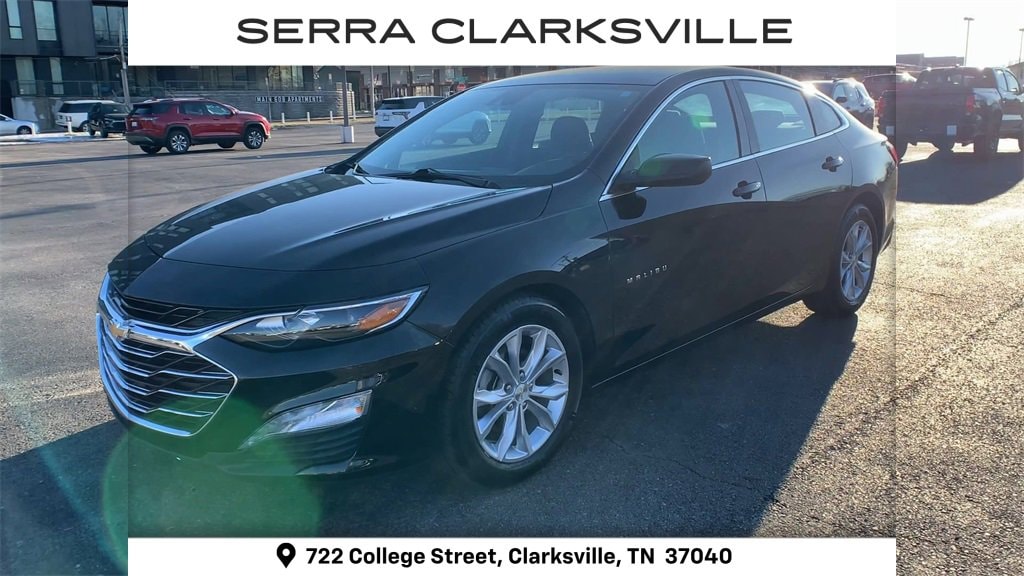 The Pre-Owned 2023 Chevrolet Malibu LT with 1.5L DOHC at Serra Clarksville. Well equipped: Preferred Equipment Group 1LT, Black Cloth, 17 Aluminum Wheels, 4-Wheel Disc Brakes, 6 Speakers, 6-Speaker Audio System Feature, 6-Way Manual Front Passenger Seat Adjuster, 8-Way Power Driver Seat Adjuster, ABS brakes, Air Conditioning, Alloy wheels, AM/FM radio: SiriusXM, Apple CarPlay/Android Auto, Auto High-beam Headlights, Automatic temperature control, Brake assist, Bumpers: body-color, Compass, Delay-off headlights, Deleted 3 Years of Remote Access, Driver door bin, Driver vanity mirror, Dual front impact airbags, Dual front side impact airbags, Electronic Stability Control, Emergency communication system: OnStar and Chevrolet connected services capable, Exterior Parking Camera Rear, Four wheel independent suspension, Front anti-roll bar, Front Bucket Seats, Front Center Armrest, Front dual zone A/C, Front reading lights, Fully automatic headlights, Heated door mirrors, Heated Driver & Front Passenger Seats, Heated front seats, Illuminated entry, Knee airbag, Low tire pressure warning, Occupant sensing airbag, Outside temperature display, Overhead airbag, Overhead console, Panic alarm, Passenger door bin, Passenger vanity mirror, Power door mirrors, Power Driver Lumbar Control Seat Adjuster, Power driver seat, Power steering, Power windows, Premium audio system: Chevrolet Infotainment 3 Plus, Premium Cloth Seat Trim, Radio data system, Radio: Chevrolet Infotainment 3 System, Rear anti-roll bar, Rear reading lights, Rear seat center armrest, Rear side impact airbag, Rear window defroster, Remote keyless entry, Security system, SiriusXM Radio, Speed control, Split folding rear seat, Steering wheel mounted audio controls, Tachometer, Telescoping steering wheel, Tilt steering wheel, Traction control, Trip computer, Variably intermittent wipers, Voltmeter, and Wireless Apple CarPlay/Android Auto.