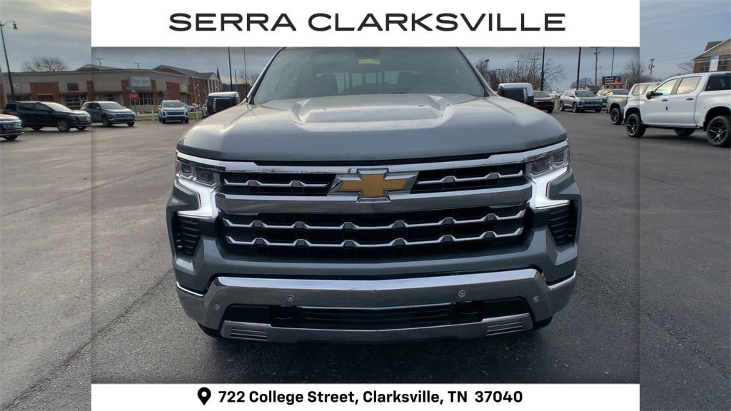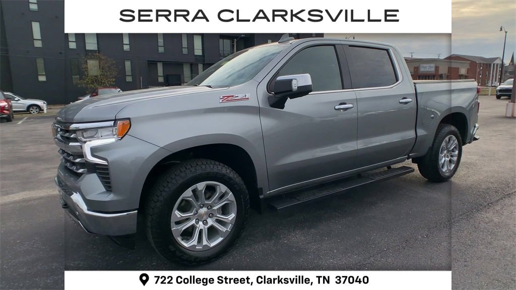 The Pre-Owned 2025 Chevrolet Silverado 1500 LTZ with EcoTec3 5.3L V8 at Serra Clarksville. Well equipped: High Capacity Suspension Package, LTZ Convenience Package (2 USB Data Ports, Floor Mounted Center Console, Power Tilt & Telescoping Steering Column, Premium Bose 7-Speaker Sound System, Ventilated Driver & Front Passenger Seats, and Wireless Charging), LTZ Convenience Package II (2nd Row Heated Outboard Seats, Adaptive Cruise Control, Power Sliding Rear Window w/Rear Defogger, and Universal Home Remote), LTZ Plus Package, Preferred Equipment Group 1LZ (10-Way Power Driver Seat w/Lumbar, 10-Way Power Passenger Seat Adjuster w/Lumbar, 12.3 Multicolor Reconfigurable Digital Display, 120-Volt Bed Mounted Power Outlet, 120-Volt Interior Power Outlet, Auto-Dimming Inside Rear-View Mirror, Auto-Locking Rear Differential, Bluetooth® For Phone, Chrome Mirror Caps, Color-Keyed Carpeting Floor Covering, Deep-Tinted Glass, Driver Memory, Dual Rear USB Ports (Charge Only), Electric Rear-Window Defogger, Electronic Cruise Control, Front Frame-Mounted Black Recovery Hooks, Front LED Fog Lamps, Front Rain-Sensing Wipers, Front Rubberized Vinyl Floor Mats, Heated Driver & Front Outboard Passenger Seats, Heated Steering Wheel, Hitch Guidance w/Hitch View, In-Vehicle Trailering System App, Integrated Trailer Brake Controller, Keyless Open & Start, LED Cargo Area Lighting, OnStar Services Capable, Outside Heated Power-Adjustable Mirrors, Power Front Passenger Windows w/Express Up/Down, Power Front Windows w/Driver Express Up/Down, Power Rear Windows w/Express Down, Power Tailgate, Rear Rubberized-Vinyl Floor Mats, Rear Wheelhouse Liners, Remote Vehicle Starter System, SiriusXM w/360L Trial Subscription, Standard Tailgate, Steering Wheel Audio Controls, Teen Driver, Theft Deterrent System (Unauthorized Entry), Tire Pressure Monitoring System, Wi-Fi Hot Spot Capable, and Wrapped Steering Wheel), Safety Package (HD Surround Vision, Perimeter Lighting, Rear Cross Traffic Braking, Rear Pedestrian Alert, Safety Alert Seat, Trailer Camera Provisions, Trailer Side Blind Zone Alert, and Ultrasonic Front & Rear Park Assist), Technology Package (15 Diagonal Multicolor Head-Up Display, Bed View Camera, and Rear Camera Mirror), Trailering Package (Hitch Guidance), Up-Level Rear Seat w/Storage Package, Z71 Off-Road Package (Heavy-Duty Air Filter, Hill Descent Control, and Off-Road Suspension), 10-Speed Automatic, 4WD, Jet Black Leather, 170 Amp Alternator, 3.23 Rear Axle Ratio, 4-Wheel Disc Brakes, 7 Speakers, ABS brakes, Air Conditioning, All-Weather Floor Liner (LPO) (AAK), Alloy wheels, AM/FM radio: SiriusXM with 360L, Apple CarPlay/Android Auto, Auto High-beam Headlights, Auto-dimming door mirrors, Auto-dimming Rear-View mirror, Automatic Emergency Braking, Automatic temperature control, Brake assist, Bumpers: chrome, Chevytec Spray-On Black Bedliner, Compass, Delay-off headlights, Driver door bin, Driver vanity mirror, Dual Exhaust w/Polished Outlets, Dual front impact airbags, Dual front side impact airbags, Electronic Stability Control, Electronic Transmission Range Selector Shifter, Emergency communication system: OnStar, Following Distance Indicator, Forward Collision Alert, Front anti-roll bar, Front Bucket Seats, Front Center Armrest, Front dual zone A/C, Front fog lights, Front Pedestrian Braking, Front reading lights, Front wheel independent suspension, Fully automatic headlights, Heated door mirrors, Heated front seats, Heated steering wheel, Illuminated entry, IntelliBeam Automatic High Beam On/Off, Lane Keep Assist w/Lane Departure Warning, Low tire pressure warning, Memory seat, Occupant sensing airbag, Outside temperature display, Overhead airbag, Overhead console, Panic alarm, Passenger door bin, Passenger vanity mirror, Perforated Leather-Appointed Front Seat Trim, Power door mirrors, Power dr