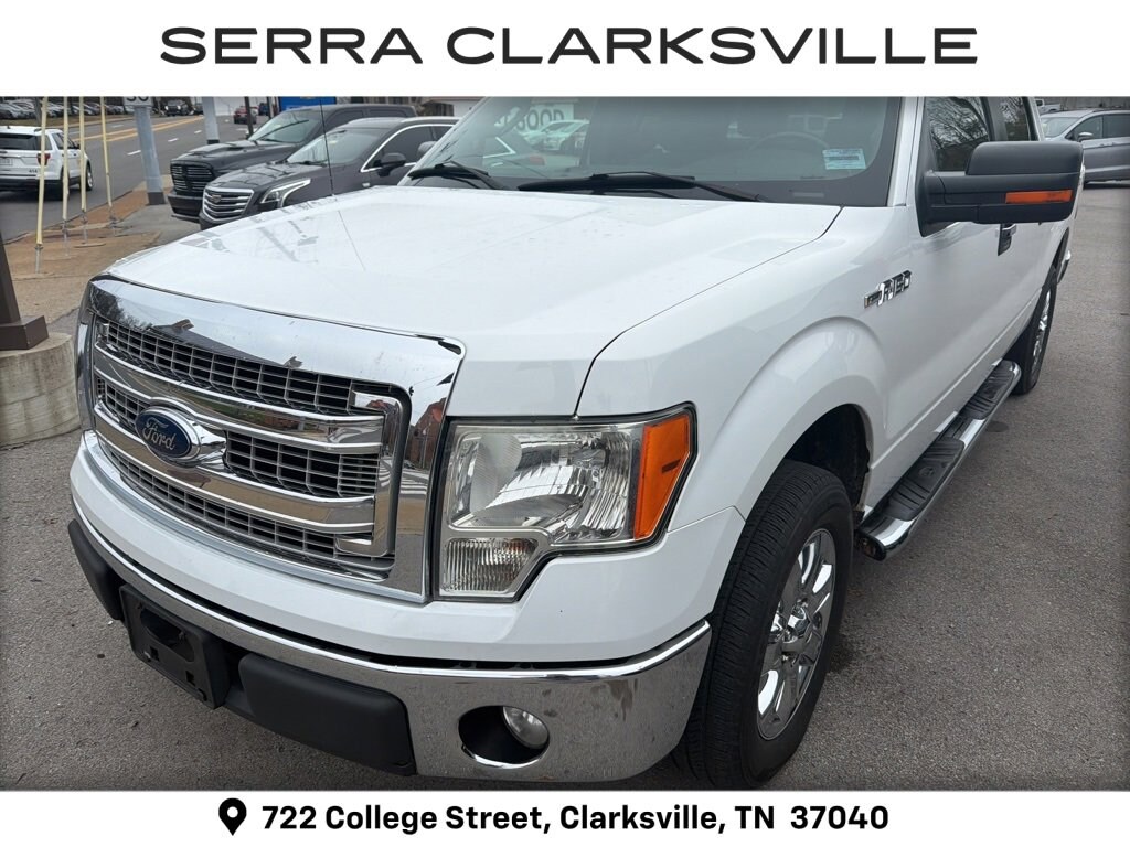 The Pre-Owned 2013 Ford F-150 XLT with 3.7L V6 FFV at Serra Clarksville. Well equipped: Equipment Group 301A Mid (SiriusXM Satellite Radio), GVWR: 6,800 lbs Payload Package, Trailer Tow Package (Auxiliary Transmission Oil Cooler, SelectShift Automatic Transmission, and Upgraded Radiator), XLT Chrome Package (18 Chrome-Clad Aluminum Wheels, 5 Chrome Running Boards, Chrome Door Handles w/Black Bezels, and Chrome Exhaust Tip), XLT Convenience Package (4.2 LCD Productivity Screen in Instrument Cluster, 6-Way Power Driver Seat, Heated Power Side Mirrors, Leather-Wrapped Steering Wheel, Power Adjustable Pedals, Self-Dimming Rear-View Mirror, and SYNC MyFord), 17 Machined-Aluminum w/Painted Accents Wheels, 3.73 Axle Ratio, 4 Speakers, 4-Wheel Disc Brakes, ABS brakes, Air Conditioning, Alloy wheels, AM/FM radio, Bumpers: chrome, CD player, Cloth 40/20/40 Front Seat, Compass, Delay-off headlights, Driver door bin, Driver vanity mirror, Dual front impact airbags, Dual front side impact airbags, Electronic Stability Control, Front anti-roll bar, Front Center Armrest w/Storage, Front fog lights, Front License Plate Bracket, Front reading lights, Front wheel independent suspension, Fully automatic headlights, Illuminated entry, Low tire pressure warning, Occupant sensing airbag, Outside temperature display, Overhead airbag, Overhead console, Panic alarm, Passenger door bin, Passenger vanity mirror, Power door mirrors, Power steering, Power windows, Radio data system, Radio: AM/FM Stereo/Clock/Single-CD, Rear reading lights, Rear step bumper, Remote keyless entry, Security system, Speed control, Speed-sensing steering, Split folding rear seat, Steering wheel mounted audio controls, SYNC, Tachometer, Tilt steering wheel, Traction control, and Variably intermittent wipers.