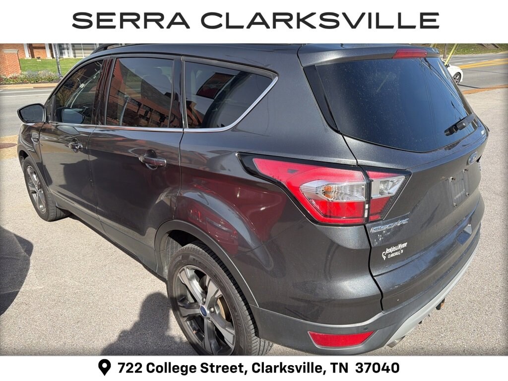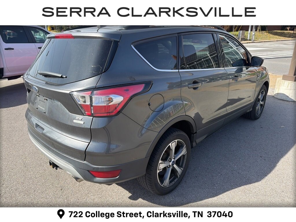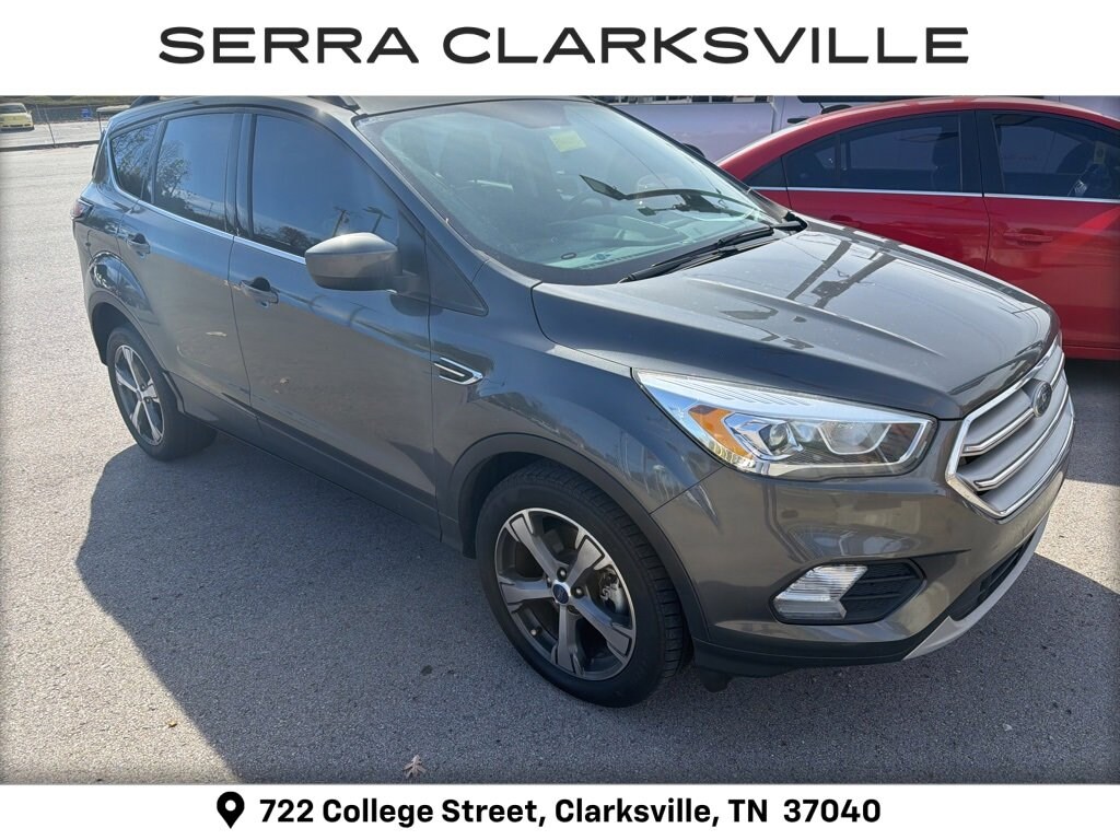 The Pre-Owned 2017 Ford Escape SE with EcoBoost 2.0L I4 GTDi DOHC Turbocharged VCT at Serra Clarksville. Well equipped: Equipment Group 201A, SE Leather Comfort Package (10-Way Power Passenger Seat, BLIS w/Cross Traffic Alert, Heated Leather-Trimmed Buckets w/60/40 Rear Seat, and Leather Steering Wheel & Shift Knob), SE Technology Package (110V/150W AC Power Outlet, 9 Speakers, Black Roof-Rack Side Rails, Halogen Projector Headlamps, One-Touch-Up/Down Front & Rear Windows, Reverse Sensing System, SYNC 3 Communications & Entertainment System, and SYNC Connect), 18 Ultra Bright Machined Aluminum Wheels, 3.21 Axle Ratio, 4-Wheel Disc Brakes, 6 Speakers, ABS brakes, Air Conditioning, Alloy wheels, AM/FM radio: SiriusXM, Automatic temperature control, Black Roof-Rail Cross Bars, Brake assist, Bumpers: body-color, CD player, Compass, Delay-off headlights, Driver door bin, Driver vanity mirror, Dual front impact airbags, Dual front side impact airbags, Electronic Stability Control, Emergency communication system: 911 Assist, Exterior Parking Camera Rear, Four wheel independent suspension, Front anti-roll bar, Front Bucket Seats, Front Center Armrest, Front dual zone A/C, Front fog lights, Front reading lights, Fully automatic headlights, Illuminated entry, Knee airbag, Low tire pressure warning, Occupant sensing airbag, Outside temperature display, Overhead airbag, Overhead console, Panic alarm, Passenger door bin, Passenger vanity mirror, Power door mirrors, Power driver seat, Power Heated Sideview Mirrors, Power Liftgate, Power steering, Power windows, Radio data system, Radio: AM/FM Single CD/MP3, Rear anti-roll bar, Rear seat center armrest, Rear window defroster, Rear window wiper, Remote keyless entry, Speed control, Speed-sensing steering, Split folding rear seat, Steering wheel mounted audio controls, SYNC Communications & Entertainment System, Tachometer, Telescoping steering wheel, Tilt steering wheel, Traction control, Trip computer, Unique Cloth Buckets w/60/40 Split Rear Seat, Variably intermittent wipers, and Wheels: 17 Sparkle Silver Painted Aluminum.