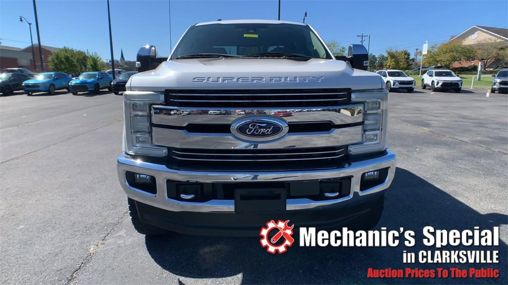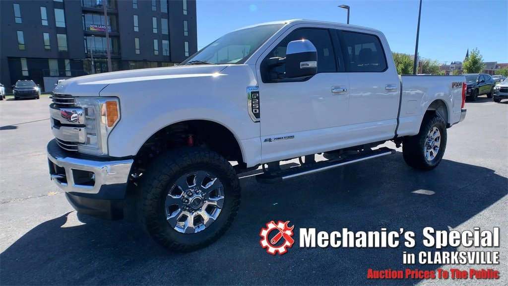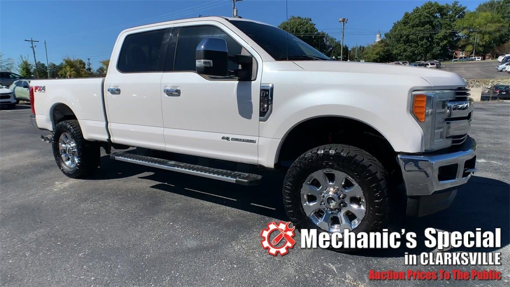 The Pre-Owned 2017 Ford F-250SD Platinum with Power Stroke 6.7L V8 DI 32V OHV Turbodiesel at Serra Clarksville. Well equipped: FX4 Off-Road Package (Colored Front & Rear Rancho Branded Shocks, Hill Descent Control, and Unique FX4 Off-Road Box Decal), GVWR: 10,000 lb Payload Package, Snow Plow Prep Package, 4WD, 10 Speakers, 110V/400W Outlet, 20 Polished Aluminum Wheels, 4-Wheel Disc Brakes, ABS brakes, Adaptive Cruise Control & Collision Warning, Adjustable pedals, Air Conditioning, Alloy wheels, AM/FM radio: SiriusXM, Auto High-beam Headlights, Auto tilt-away steering wheel, Auto-dimming Rear-View mirror, Automatic temperature control, Brake assist, Bumpers: body-color, CD player, Compass, Delay-off headlights, Driver door bin, Driver vanity mirror, a Dual 78-AH 750 CCA Batteries for those cold mornings, Dual front impact airbags, Dual front side impact airbags, Electronic Stability Control, Emergency communication system: SYNC 3 911 Assist, Engine Block Heater, Exterior Parking Camera Rear, Flow-Through Console, Front anti-roll bar, Front Bucket Seats, Front Center Armrest, Front dual zone A/C, Front fog lights, Front reading lights, Fully automatic headlights, Garage door transmitter, Heated door mirrors, Heated front seats, Heated rear seats, Heated steering wheel, Illuminated entry, Leather steering wheel, Low tire pressure warning, Memory seat, Navigation System, Outside temperature display, Overhead airbag, Overhead console, Panic alarm, Passenger door bin, Passenger vanity mirror, Pedal memory, Power door mirrors, Power driver seat, Power passenger seat, Power steering, Power windows, Radio data system, Radio: Premium Sony Audio w/Single-CD/MP3 Player, Rain sensing wipers, Rapid-Heat Supplemental Cab Heater, Rear Inflatable Seat Belts, Rear Parking Sensors, Rear reading lights, Rear seat center armrest, Rear step bumper, Rear window defroster, Remote keyless entry, Security system, SiriusXM Radio, Speed control, Speed-sensing steering, Split folding rear seat, Steering wheel memory, Steering wheel mounted A/C controls, Steering wheel mounted audio controls, SYNC 3 Communications & Entertainment System, Tachometer, Telescoping steering wheel, Tilt steering wheel, Traction control, Trip computer, Turn signal indicator mirrors, Twin Panel Power Moonroof, Unique Platinum Leather 40/Console/40 Seats, Upfitter Switches (6), Variably intermittent wipers, and Ventilated front seats.