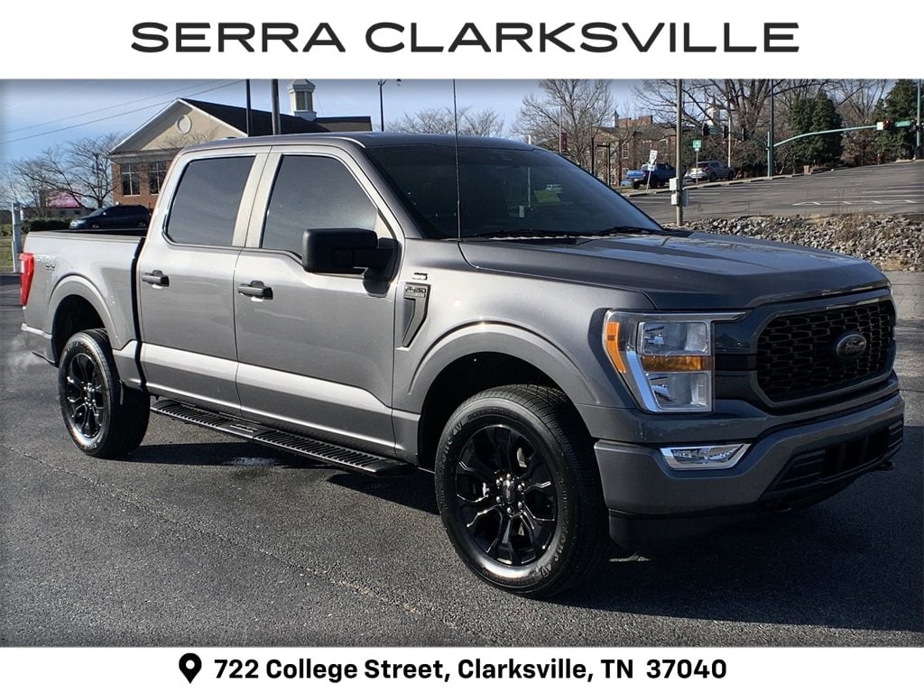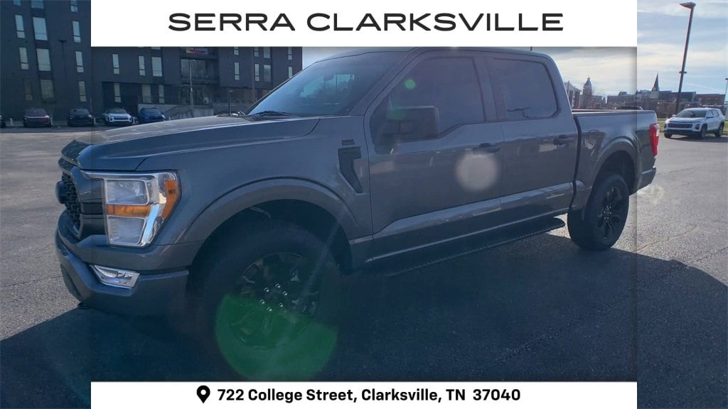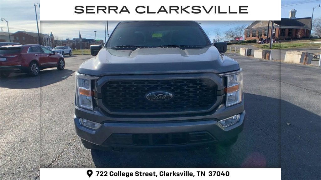 The Pre-Owned 2022 Ford F-150 XL with 3.5L V6 EcoBoost at Serra Clarksville. Well equipped: Equipment Group 101A High (Cruise Control and Reverse Sensing System), 4WD, 3.31 Axle Ratio, 4-Wheel Disc Brakes, 6 Speakers, ABS brakes, Air Conditioning, AM/FM radio, Auto High Beam, Auto High-beam Headlights, Auto Start-Stop Removal, Black Platform Running Boards, Brake assist, Class IV Trailer Hitch Receiver, Cloth 40/20/40 Front Seat, Compass, Delay-off headlights, Driver door bin, Dual front impact airbags, Dual front side impact airbags, Electronic Stability Control, Emergency communication system: SYNC 4 911 Assist, Exterior Parking Camera Rear, Front anti-roll bar, Front Center Armrest, Front License Plate Bracket, Front reading lights, Front wheel independent suspension, Fully automatic headlights, Illuminated entry, Lane-Keeping System, Low tire pressure warning, Occupant sensing airbag, Outside temperature display, Overhead airbag, Overhead console, Panic alarm, Passenger door bin, Passenger vanity mirror, Power door mirrors, Power steering, Power windows, Pre-Collision Assist w/Automatic Emergency Braking, Radio data system, Radio: AM/FM Stereo w/6 Speakers, Rear step bumper, Rear-View Camera, Remote keyless entry, Security system, Speed-sensing steering, Split folding rear seat, Steering wheel mounted audio controls, SYNC 4, Tachometer, Telescoping steering wheel, Tilt steering wheel, Traction control, Trip computer, Unique Sport Cloth 40/Console/40 Front-Seats, Variably intermittent wipers, Voltmeter, and Wheels: 17 Silver Steel.