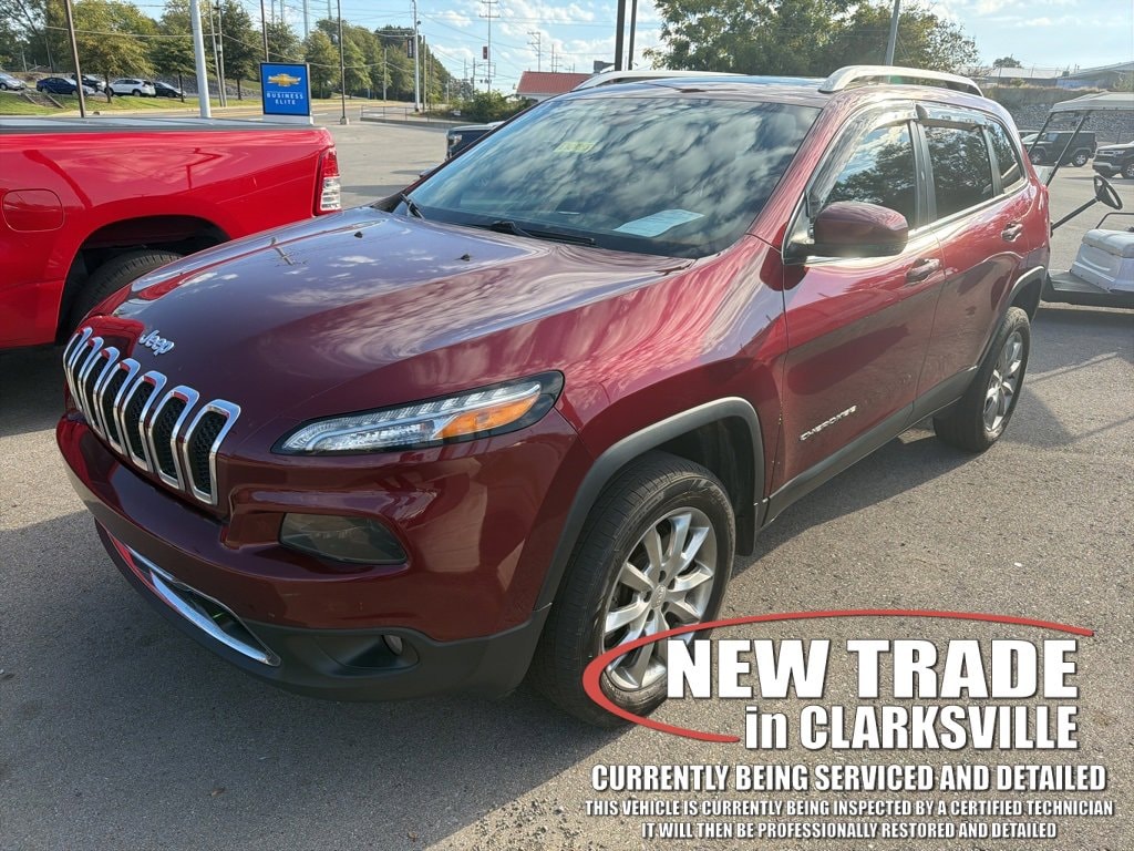 One-owner local new car trade-in! Clean CARFAX. The Pre-Owned 2018 Jeep Cherokee Limited with 2.4L I4 MultiAir at Serra Clarksville. Well equipped: Luxury Group (Exterior Mirrors w/Memory, Premium Leather Trimmed Bucket Seats, Radio/Driver Seat/Exterior Mirrors Memory, Tonneau Cover, and Ventilated Front Seats), Quick Order Package 25G, Trailer Tow Group (7 & 4 Pin Wiring Harness, Auxiliary Transmission Oil Cooler, Class III Receiver Hitch, and Trailer Tow Wiring Harness), 1 Year Trial (Registration Required), 3.734 Axle Ratio, 4-Wheel Disc Brakes, 5-Year SiriusXM Traffic Service, 5-Year SiriusXM Travel Link Service, 6 Speakers, 600 Amp Maintenance Free Battery, 8.4 Touchscreen Display, ABS brakes, Active Grille Shutters, Air Conditioning, Alloy wheels, AM/FM radio: SiriusXM, Anti-whiplash front head restraints, Auto-dimming Rear-View mirror, Automatic temperature control, Brake assist, Bumpers: body-color, Compass, Delay-off headlights, Driver door bin, Driver vanity mirror, Dual front impact airbags, Dual front side impact airbags, Electronic Range Select, Electronic Stability Control, Emergency communication system: Uconnect Access, Engine Oil Cooler, Exterior Mirrors Courtesy Lamps, Exterior Mirrors w/Supplemental Signals, Four wheel independent suspension, Front anti-roll bar, Front Bucket Seats, Front Center Armrest, Front dual zone A/C, Front fog lights, Front reading lights, Fully automatic headlights, Garage door transmitter, GPS Antenna Input, GPS Navigation, HD Radio, Heated door mirrors, Heated front seats, Heated steering wheel, High intensity discharge headlights: Bi-Xenon, Illuminated entry, Integrated Voice Command w/Bluetooth, Knee airbag, Leather Shift Knob, Leather Trimmed Bucket Seats, Low tire pressure warning, Normal Duty Suspension, Occupant sensing airbag, Off Road Suspension, Outside temperature display, Overhead airbag, Overhead console, Panic alarm, ParkView Rear Back-Up Camera, Passenger door bin, Passenger vanity mirror, Power door mirrors, Power driver seat, Power Front/Fixed Rear Full Sunroof, Power Liftgate, Power steering, Power windows, Radio data system, Radio: Uconnect 3C Nav w/8.4 Display, Radio: Uconnect 3C w/8.4 Display, Rear anti-roll bar, Rear reading lights, Rear seat center armrest, Rear side impact airbag, Rear window defroster, Rear window wiper, Remote keyless entry, Roof rack: rails only, Security system, SiriusXM Satellite Radio, SiriusXM Traffic, SiriusXM Travel Link, Speed control, Speed-sensing steering, Split folding rear seat, Spoiler, Steering wheel mounted audio controls, Tachometer, Telescoping steering wheel, Tilt steering wheel, Traction control, Trip computer, Turn signal indicator mirrors, Uconnect Access, Variably intermittent wipers, Voltmeter, and Wheels: 18 x 7 Painted Aluminum.