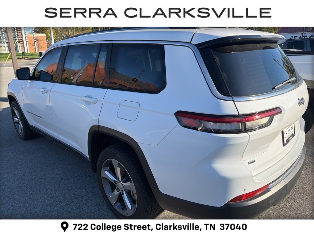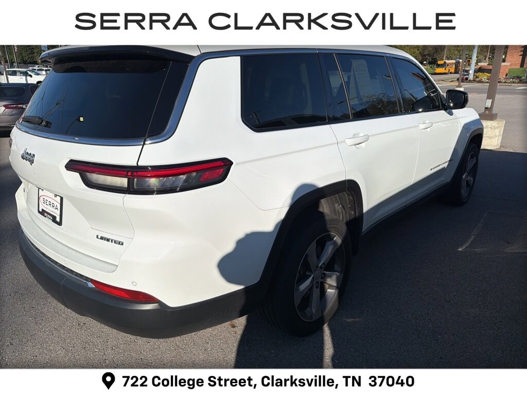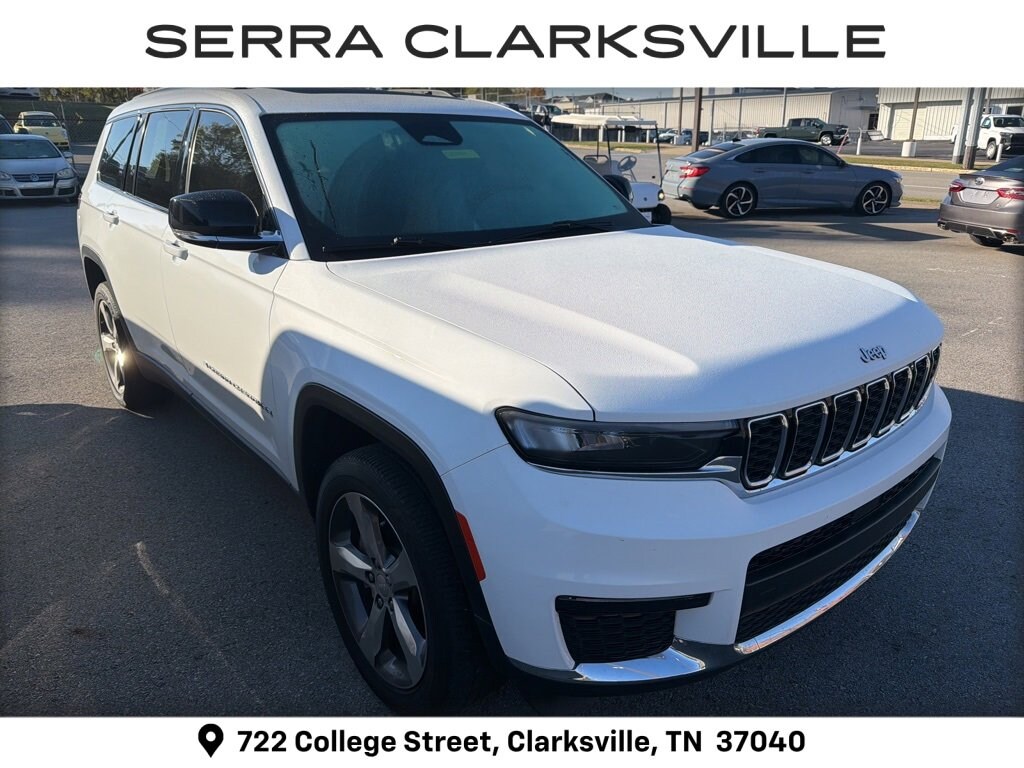 One-owner local trade-in! Clean CARFAX. The Pre-Owned 2021 Jeep Grand Cherokee L Limited with 3.6L V6 24V VVT at Serra Clarksville. Well equipped: Quick Order Package 22E, 10.1 Touchscreen Display, 3.45 Rear Axle Ratio, 3rd row seats: split-bench, 4-Wheel Disc Brakes, 506 Watt Amplifier, 6 Speakers, 9 Amplified Speakers w/Subwoofer, ABS brakes, Air Conditioning, Alloy wheels, AM/FM radio: SiriusXM w/360L, Anti-whiplash front head restraints, Apple CarPlay, Apple CarPlay/Android Auto, Audio memory, Auto High-beam Headlights, Automatic temperature control, Brake assist, Bridgestone Brand Tires, Bumpers: body-color, Capri Leather Seats, Compass, Connected Travel & Traffic Services, Connectivity - US/Canada, Delay-off headlights, Disassociated Touchscreen Display, Driver door bin, Driver vanity mirror, Dual front impact airbags, Dual front side impact airbags, Dual-Pane Panoramic Sunroof, Electronic Stability Control, Emergency communication system, Four wheel independent suspension, Front anti-roll bar, Front Bucket Seats, Front Center Armrest w/Storage, Front dual zone A/C, Front fog lights, Front reading lights, Fully automatic headlights, Garage door transmitter, Google Android Auto, GPS Antenna Input, GPS Navigation, HD Radio, Heated door mirrors, Heated front seats, Heated rear seats, Heated steering wheel, Illuminated entry, Integrated Center Stack Radio, Integrated Voice Command w/Bluetooth, Interior Rear Facing Camera, Knee airbag, Leather steering wheel, Low tire pressure warning, Manual Fold Seatbacks, Memory seat, Normal Duty Suspension, Occupant sensing airbag, Outside temperature display, Overhead airbag, Overhead console, Panic alarm, ParkView Rear Back-Up Camera, Passenger door bin, Passenger vanity mirror, Power door mirrors, Power driver seat, Power Liftgate, Power passenger seat, Power steering, Power windows, Radio data system, Radio: Uconnect 5 Nav w/10.1 Display, Radio: Uconnect 5 w/8.4 Display, Rear air conditioning, Rear anti-roll bar, Rear reading lights, Rear window defroster, Rear window wiper, Reclining 3rd row seat, Remote keyless entry, Roof rack: rails only, Security system, SiriusXM Satellite Radio, SiriusXM w/360L, Speed control, Speed-Sensitive Wipers, Split folding rear seat, Spoiler, Steering wheel mounted audio controls, Tachometer, Telescoping steering wheel, Tilt steering wheel, Traction control, Trip computer, Turn signal indicator mirrors, USB Host Flip, Variably intermittent wipers, Wheels: 18 x 8.0 Fully Painted Aluminum 2, and Wheels: 20 x 8.5 Polished/Painted Aluminum.RWD 3.6L V6 24V VVT 8-Speed AutomaticRecent Arrival! 19/26 City/Highway MPG