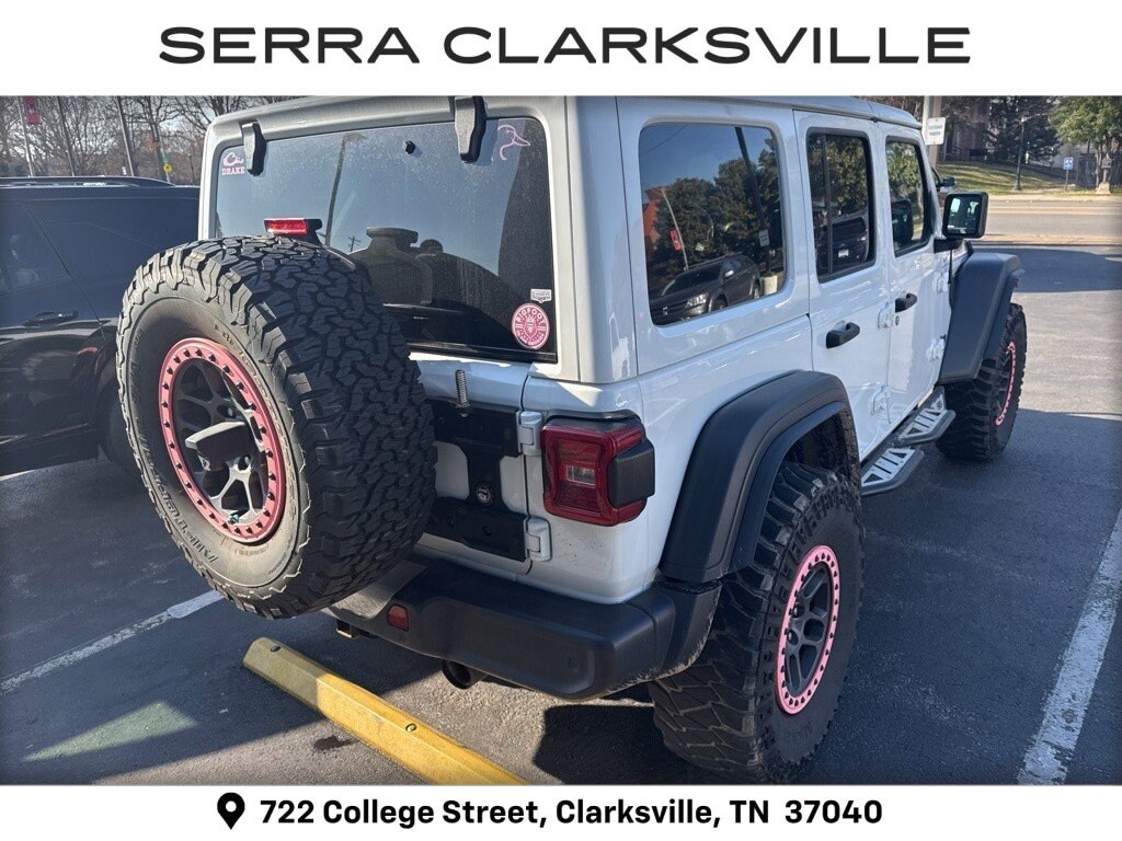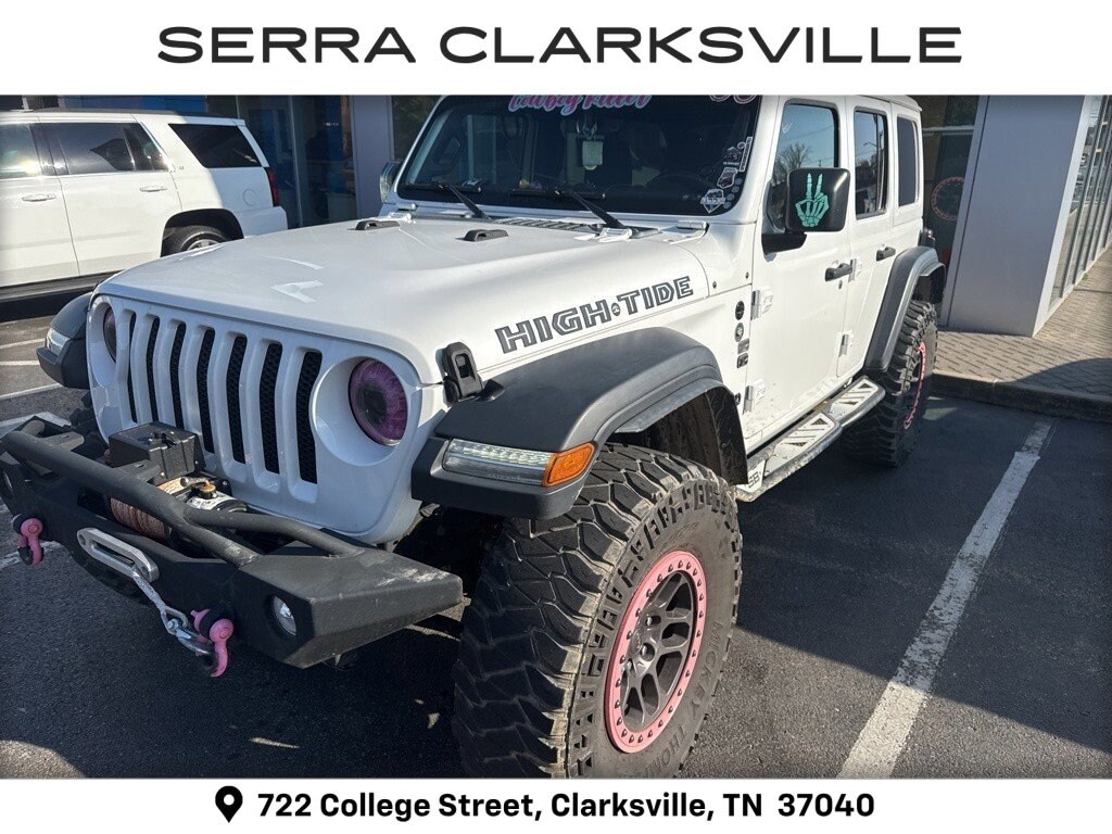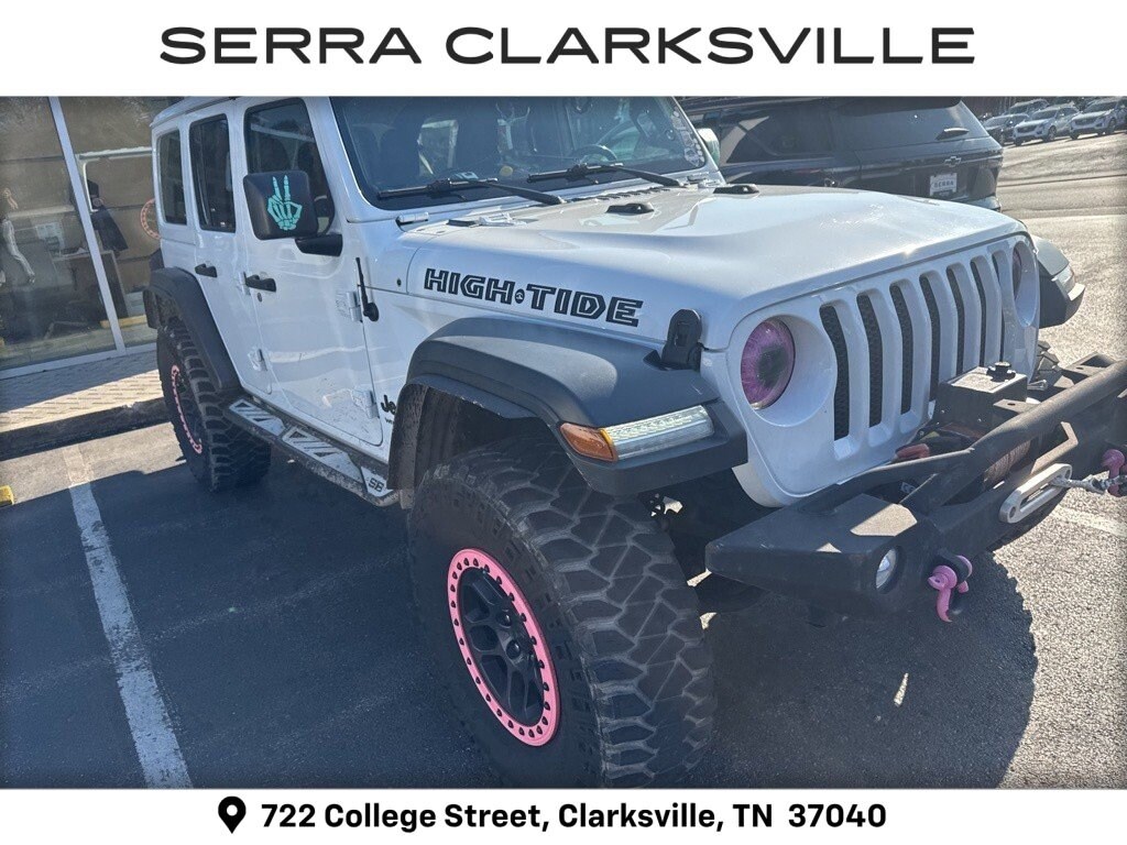 Clean CARFAX. Bright White Clearcoat 2022 Jeep Wrangler Unlimited High TideThe Pre-Owned 2022 Jeep Wrangler Unlimited High Tide with 3.6L V6 24V VVT at Serra Clarksville. Well equipped: 8.4 Radio & Premium Audio Group (1-Year SiriusXM Guardian Trial, 220 Amp Alternator, 4G LTE Wi-Fi Hot Spot, 5-Year SiriusXM Traffic Service, 5-Year SiriusXM Travel Link Service, 8.4 Touchscreen Display, Air Conditioning w/Auto Temperature Control, Air Filtering, Alpine Premium Audio System, Auto-Dimming Rear-View Mirror, Emergency/Assistance Call, GPS Navigation, HD Radio, Off-Road Info Pages, Radio: Uconnect 4C Nav w/8.4 Display, SiriusXM Radio Service, SiriusXM Satellite Radio, SiriusXM Traffic Plus, and SiriusXM Travel Link), Cold Weather Group (Heated Front Seats, Heated Steering Wheel, and Leather Wrapped Steering Wheel), Convenience Group (Universal Garage Door Opener), High Tide Package, LED Headlamp & Fog Lamp Group (Front LED Fog Lamps and LED Premium Reflector Headlamps), Quick Order Package 25D High Tide (97 MPH Vehicle Max Speed Calibration, Automatic Headlamps, BF Goodrich Brand Tires, Black Trail Rated Badge, Body Color 3-Piece Hard Top, Corning Gorilla Glass, Deep Tint Sunscreen Windows, Freedom Panel Storage Bag, Front 1-Touch Down Power Windows, High Tide Hood Decal, Matte Black Jeep Badge, Mold In Color Bumper w/Gloss Black, MOPAR All-Weather Floor Mats, MOPAR Sunrider For Hardtop, No Soft Top, Power Heated Mirrors, Rear Window Defroster, Rear Window Wiper/Washer, Remote Keyless Entry, Security Alarm, Speed Sensitive Power Locks, and Sun Visors w/Illuminated Vanity Mirrors), Safety Group (Blind Spot & Cross Path Detection, Injection Molded Black Rear Bumper, LED Taillamps, and ParkSense Rear Park Assist System), Technology Group (2-Door Passive Entry, Front Door Locks and Cluster 7.0 TFT Color Display), Xtreme Recon 35 Tire Package (35 Tire Suspension, Anti-Lock 4-Wheel Disc Perf Brakes, Anti-Spin Differential Rear Axle, Dana M210 Wide HD Tube Front Axle, Dana M220 Wide Rear Axle, Molded in Color Rubicon Highline Flare, MOPAR Hinge-Gate Reinforcement, Wheel Flare Extensions, and Wheels: 17 x 8 Beadlock Capable), 110 MPH Vehicle Max Speed Calibration, 4-Wheel Disc Brakes, 8 Speakers, ABS brakes, Air Conditioning, AM/FM radio, Apple CarPlay/Android Auto, Aux Battery, Brake assist, Cloth Low-Back Bucket Seats, Compass, Delay-off headlights, Driver door bin, Driver vanity mirror, Dual front impact airbags, Dual front side impact airbags, Electronic Stability Control, Emergency communication system: SiriusXM Guardian, Engine Oil Cooler, Front anti-roll bar, Front Bucket Seats, Front Center Armrest w/Storage, Front fog lights, Front reading lights, Integrated roll-over protection, Low tire pressure warning, Mid Model Year Vehicle Tracking (DISC), Non-Lock Fuel Cap w/o Discriminator, Normal Duty Suspension, Occupant sensing airbag, Outside temperature display, ParkView Rear Back-Up Camera, Passenger door bin, Passenger vanity mirror, Power steering, Radio data system, Radio: Uconnect 4 w/7 Display, Rear anti-roll bar, Rear reading lights, Speed control, Split folding rear seat, Steering wheel mounted audio controls, Stop-Start Dual Battery System, Tachometer, Telescoping steering wheel, Tilt steering wheel, Traction control, Trip computer, Variably intermittent wipers, and Wheels: 17 x 7.5 Black Steel Styled.4WD 3.6L V6 24V VVT 8-Speed AutomaticRecent Arrival!