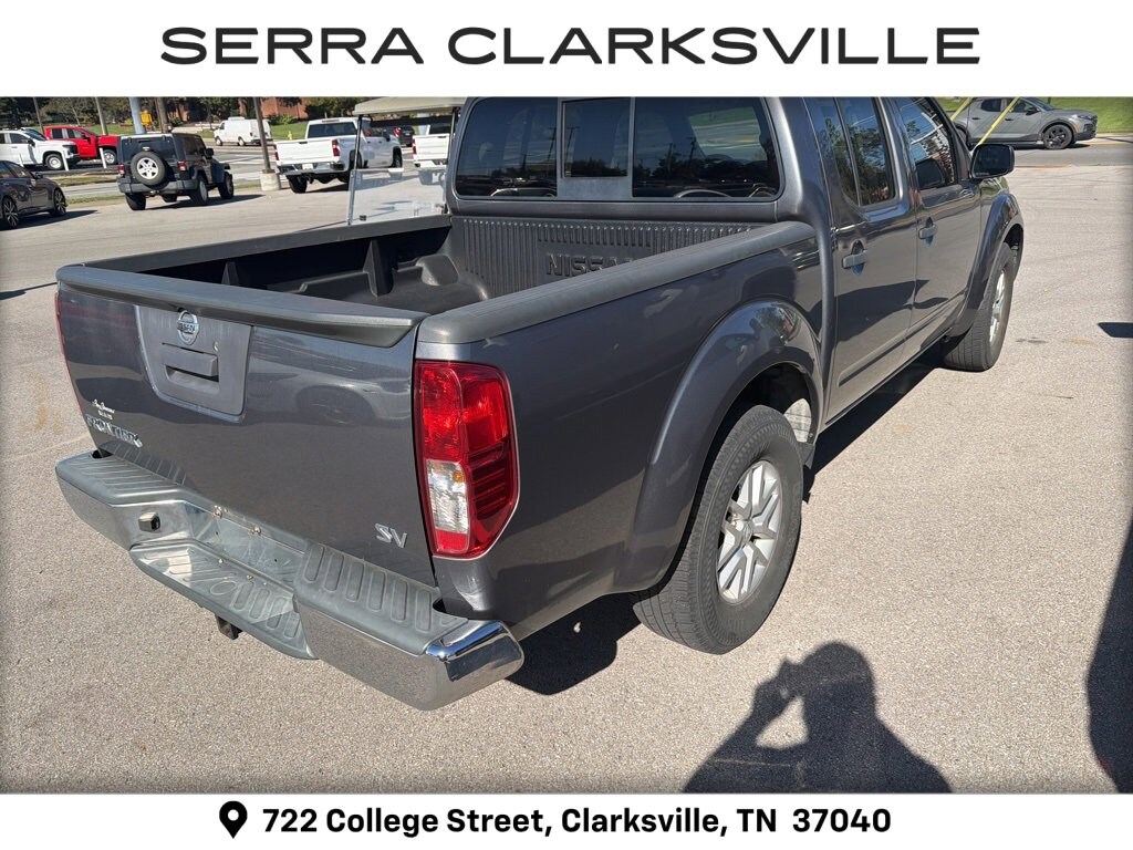The Pre-Owned 2019 Nissan Frontier SV with 4.0L V6 DOHC at Serra Clarksville. Well equipped: 16 Alloy Wheels, 3.133 Axle Ratio, 4-Wheel Disc Brakes, 6 Speakers, ABS brakes, Air Conditioning, Alloy wheels, AM/FM radio, Anti-whiplash front head restraints, Bumpers: body-color, Cloth Seat Trim, Driver door bin, Driver vanity mirror, Dual front impact airbags, Dual front side impact airbags, Electronic Stability Control, Exterior Parking Camera Rear, Front anti-roll bar, Front Bucket Seats, Front Center Armrest, Front reading lights, Front wheel independent suspension, Illuminated entry, Low tire pressure warning, Occupant sensing airbag, Overhead airbag, Overhead console, Panic alarm, Passenger door bin, Passenger vanity mirror, Power door mirrors, Power steering, Power windows, Radio data system, Radio: AM/FM w/Auxiliary, Rear step bumper, Remote keyless entry, Speed control, Speed-sensing steering, Split folding rear seat, Steering wheel mounted audio controls, Tachometer, Tilt steering wheel, Traction control, Variably intermittent wipers, and Voltmeter.