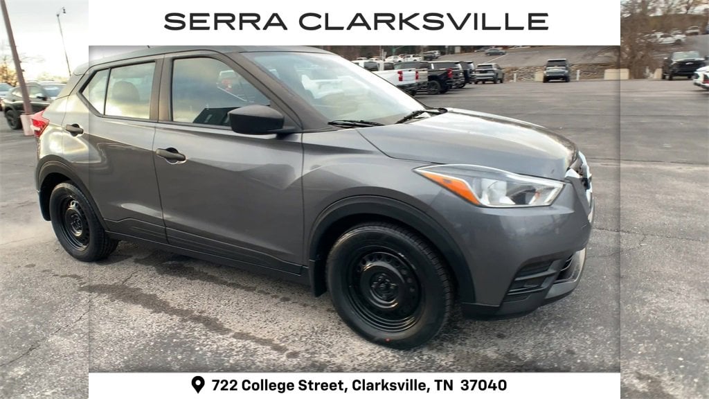 The Pre-Owned 2020 Nissan Kicks S with 1.6L 4-Cylinder DOHC 16V at Serra Clarksville. Well equipped: 16 Steel Wheels w/Full Covers, 3.927 Axle Ratio, 6 Speakers, ABS brakes, Air Conditioning, AM/FM radio, Auto High-beam Headlights, Blind Spot Warning, Brake assist, Bumpers: body-color, Carpeted Floor Mats w/Cargo Mat, Cloth Seat Trim, Driver door bin, Driver vanity mirror, Driver's Seat Mounted Armrest, Dual front impact airbags, Dual front side impact airbags, Electronic Stability Control, Front anti-roll bar, Front Bucket Seats, Front reading lights, Front wheel independent suspension, Fully automatic headlights, Illuminated entry, Knee airbag, Low tire pressure warning, Occupant sensing airbag, Outside temperature display, Overhead airbag, Panic alarm, Passenger door bin, Passenger vanity mirror, Power door mirrors, Power steering, Power windows, Radio data system, Radio: AM/FM Audio System, Rear Parking Sensors, Rear reading lights, Rear side impact airbag, Rear window defroster, Rear window wiper, Remote keyless entry, Speed control, Splash Guards Grain (4 Piece), Split folding rear seat, Sport steering wheel, Steering wheel mounted audio controls, Tachometer, Telescoping steering wheel, Tilt steering wheel, Traction control, Trip computer, and Variably intermittent wipers.