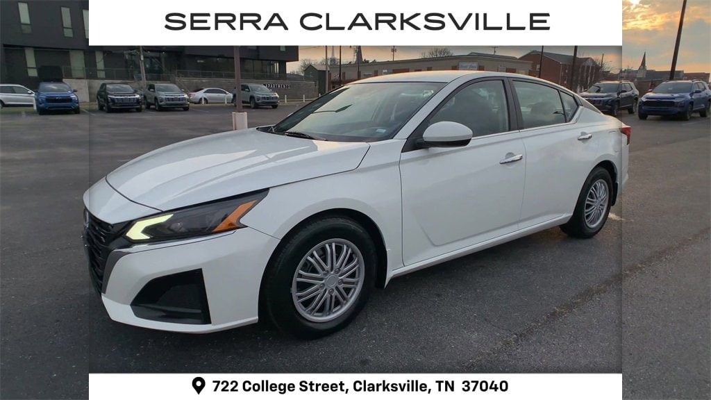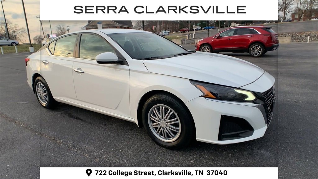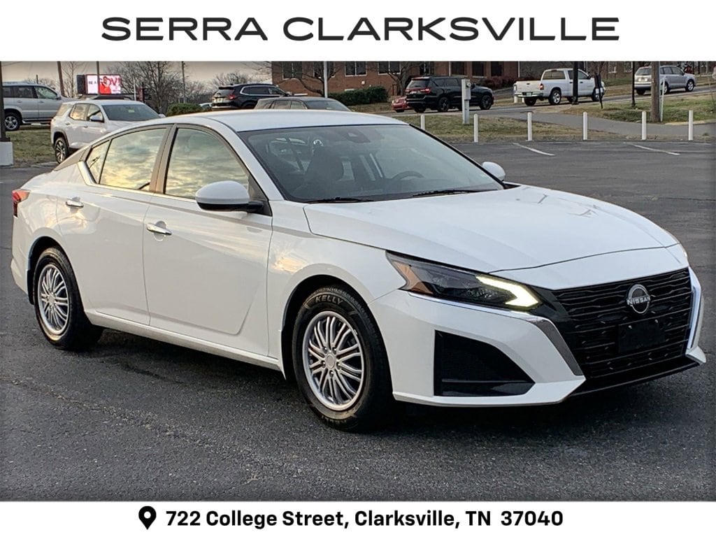 The Pre-Owned 2023 Nissan Altima 2.5 S with 2.5L 4-Cylinder DOHC 16V at Serra Clarksville. Well equipped: CVT with Xtronic, 4-Wheel Disc Brakes, 6 Speakers, ABS brakes, Air Conditioning, AM/FM radio, Auto High-beam Headlights, Body-Colored Splash Guards, Brake assist, Bumpers: body-color, Cloth Seat Trim, Delay-off headlights, Driver door bin, Driver vanity mirror, Dual front impact airbags, Dual front side impact airbags, Electronic Stability Control, Floor Mats/Trunk Mat/Hideaway Net, Four wheel independent suspension, Front anti-roll bar, Front Bucket Seats, Front Center Armrest, Front reading lights, Fully automatic headlights, Illuminated entry, Knee airbag, Low tire pressure warning, Occupant sensing airbag, Outside temperature display, Overhead airbag, Overhead console, Panic alarm, Passenger door bin, Passenger vanity mirror, Power door mirrors, Power steering, Power windows, Radio data system, Radio: AM/FM Audio System, Rear anti-roll bar, Rear Parking Sensors, Rear reading lights, Rear seat center armrest, Rear side impact airbag, Rear window defroster, Remote keyless entry, Security system, Speed control, Speed-sensing steering, Speed-Sensitive Wipers, Split folding rear seat, Steering wheel mounted audio controls, Tachometer, Tech Spec Change, Telescoping steering wheel, Tilt steering wheel, Traction control, Trip computer, Variably intermittent wipers, and Wheels: 16 x 7 Steel w/Full Wheel Covers.