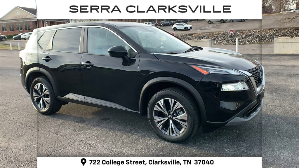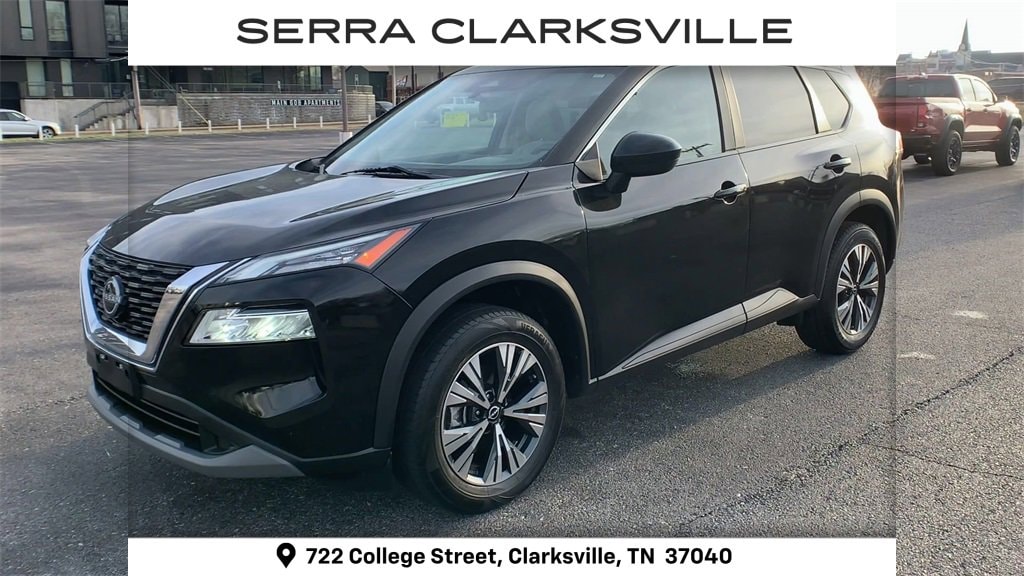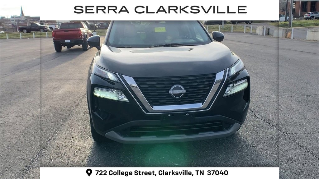 The Pre-Owned 2023 Nissan Rogue SV with 1.5L I3 Turbocharged DOHC 12V LEV3-ULEV50 201hp at Serra Clarksville. Well equipped: 18 Aluminum Alloy Wheels, 4-Wheel Disc Brakes, 5.604 Axle Ratio, 6 Speakers, ABS brakes, Air Conditioning, Alloy wheels, AM/FM Radio, AM/FM radio: SiriusXM, Auto High-beam Headlights, Automatic temperature control, Brake assist, Bumpers: body-color, Cloth Seat Trim, Delay-off headlights, Driver door bin, Driver vanity mirror, Dual front impact airbags, Dual front side impact airbags, Electronic Stability Control, Emergency communication system: NissanConnect Services, Four wheel independent suspension, Front anti-roll bar, Front Bucket Seats, Front Center Armrest, Front dual zone A/C, Front reading lights, Fully automatic headlights, Heated door mirrors, Illuminated entry, Knee airbag, Low tire pressure warning, NissanConnect featuring Apple CarPlay and Android Auto, Occupant sensing airbag, Outside temperature display, Overhead airbag, Overhead console, Panic alarm, Passenger door bin, Passenger vanity mirror, Power door mirrors, Power driver seat, Power steering, Power windows, Radio data system, Rear anti-roll bar, Rear Parking Sensors, Rear seat center armrest, Rear side impact airbag, Rear window defroster, Rear window wiper, Remote keyless entry, Speed control, Speed-Sensitive Wipers, Split folding rear seat, Spoiler, Steering wheel mounted audio controls, Tachometer, Telescoping steering wheel, Tilt steering wheel, Traction control, Trip computer, and Variably intermittent wipers.