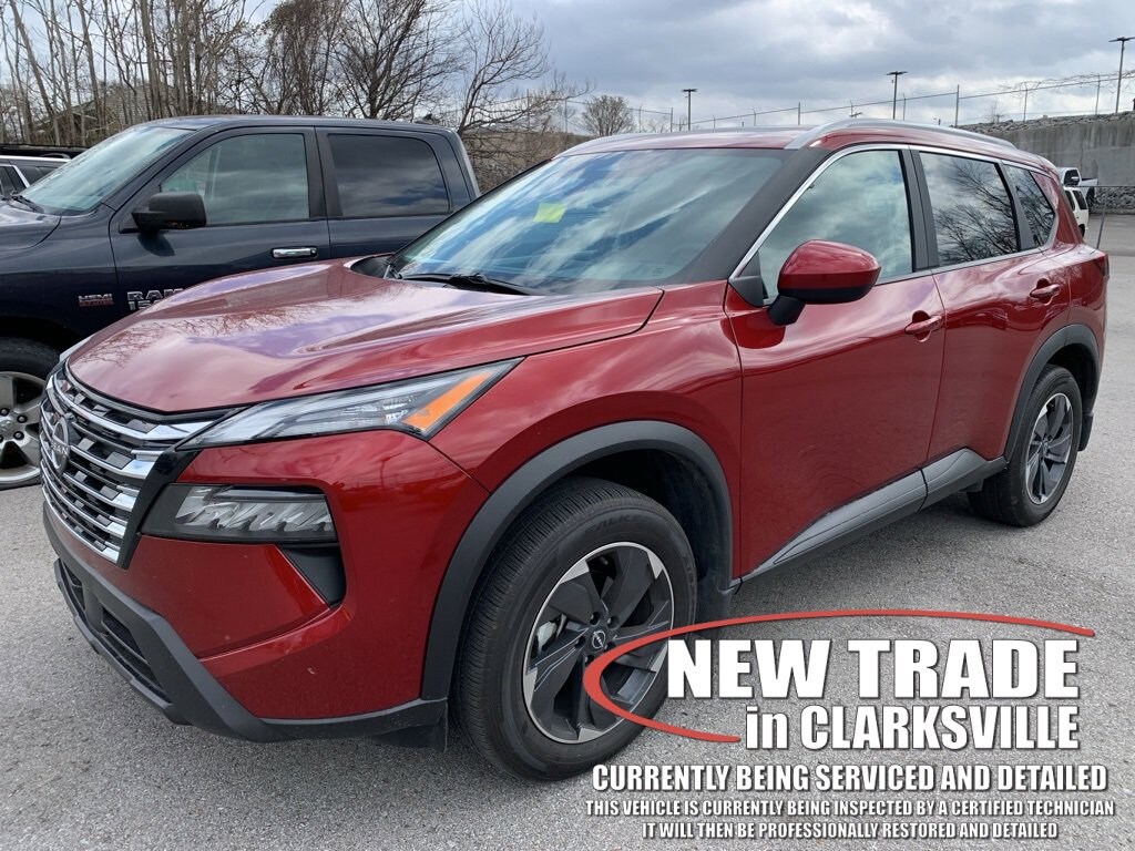 The Pre-Owned 2025 Nissan Rogue SV with 1.5L DOHC at Serra Clarksville. Well equipped: SV Premium Package (Heated Front Seats, Heated Steering Wheel, Leatherette Door Trim Inserts with Stitch, Panoramic Moonroof, Prima-Tex Leatherette Seat Trim, Rear Door Sunshades, Rear Personal Lights, and Silver Painted Roof Rails), 4-Wheel Disc Brakes, 6 Speakers, ABS brakes, Air Conditioning, Alloy wheels, AM/FM radio: SiriusXM, Android Auto and Apple CarPlay, Auto High-beam Headlights, Automatic temperature control, Black Splash Guards (set of 4), Brake assist, Bumpers: body-color, Chrome Rear Bumper Protector, Cloth Seat Trim with Patterned Inserts, Delay-off headlights, Driver door bin, Driver vanity mirror, Dual front impact airbags, Dual front side impact airbags, Electronic Stability Control, Emergency communication system: NissanConnect Services, First Aid Kit, Floor Mats with 1-Piece Cargo Area Protector, Four wheel independent suspension, Front anti-roll bar, Front Bucket Seats, Front Bucket Seats with 8-Way Power Driver Seat, Front Center Armrest, Front dual zone A/C, Front reading lights, Fully automatic headlights, Heated door mirrors, Illuminated entry, Knee airbag, Low tire pressure warning, Occupant sensing airbag, Outside temperature display, Overhead airbag, Overhead console, Panic alarm, Passenger door bin, Passenger vanity mirror, Power door mirrors, Power driver seat, Power Liftgate, Power steering, Power windows, Premium Paint, Radio data system, Radio: NissanConnect with 6 Speakers, Rear anti-roll bar, Rear seat center armrest, Rear side impact airbag, Rear window defroster, Rear window wiper, Remote keyless entry, Speed control, Speed-sensing steering, Speed-Sensitive Wipers, Split folding rear seat, Spoiler, Steering wheel mounted audio controls, Tachometer, Telescoping steering wheel, Tilt steering wheel, Traction control, Trip computer, Variably intermittent wipers, and Wheels: 18 Dark Painted Machine Finished Alloy.