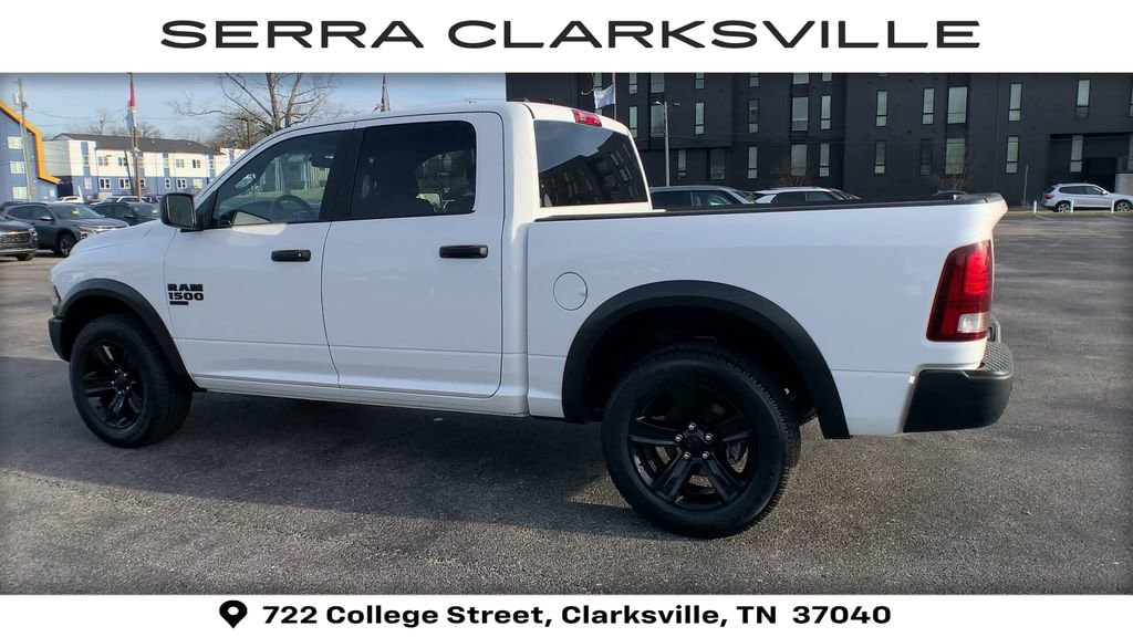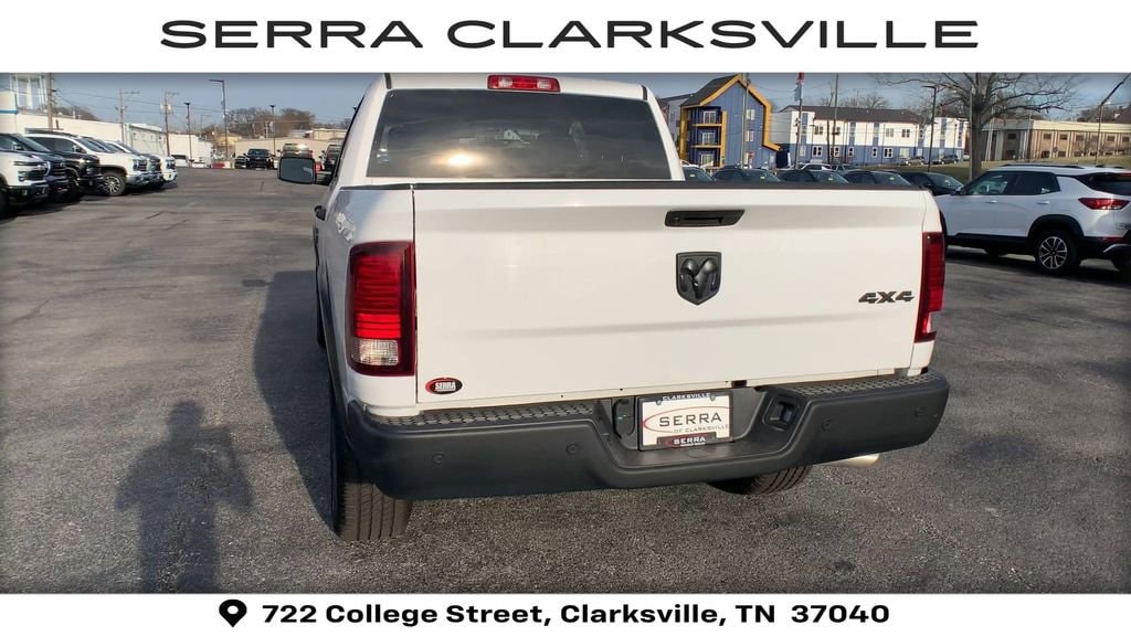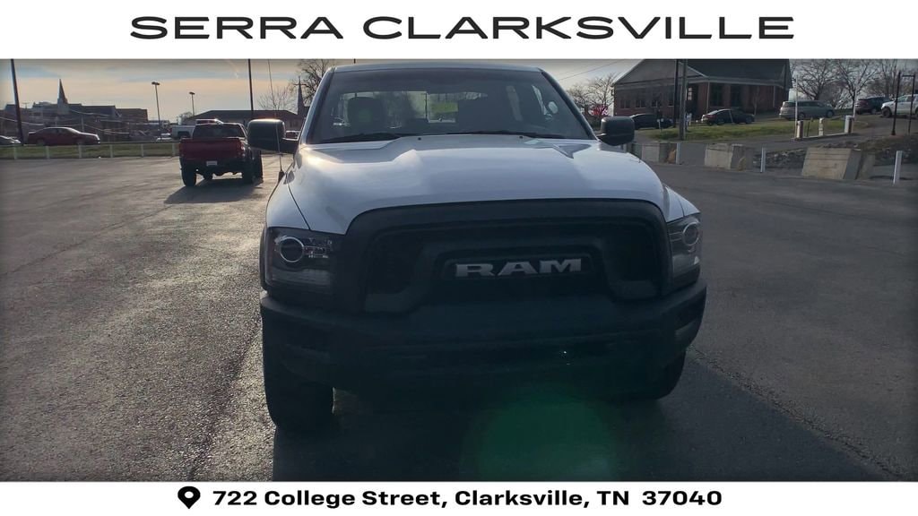 The Pre-Owned 2024 Ram 1500 Classic Warlock with 3.6L V6 24V VVT at Serra Clarksville. Well equipped: Quick Order Package 29F Warlock (4x4 Flat Black Badge, B-Pillar Black Out, Bi-Function Halogen Projector Headlamps, Black Exterior Truck Badging, Black Grille w/RAM Lettering, Black Headlamp Filler Panel, Black Powder Coated Front Bumper, Black Powder Coated Rear Bumper, Black RAM Head Tailgate Badge, Black Wheel Flares, Front Wheel Well Liners, ParkSense Rear Park Assist System, Raised Ride Height, Rear Extra HD Shock Absorbers, Semi-Gloss Black Hub, Sport Tail Lamps, Warlock, Warlock Interior Accents, and Wheels: 20 x 9 High Gloss Black Aluminum), 17 x 7 Aluminum Wheels, 3.21 Rear Axle Ratio, 4-Wheel Disc Brakes, 40/20/40 Split Bench Seat, 6 Speakers, ABS brakes, Active Grille Shutters, Air Conditioning, Alloy wheels, AM/FM radio: SiriusXM, Audio Input Jack for Mobile Devices, Black Exterior Mirrors, Brake assist, Bumpers: chrome, Center Hub, Cloth 40/20/40 Bench Seat, Compass, Delay-off headlights, Driver door bin, Dual front impact airbags, Dual front side impact airbags, Electronic Shift, Electronic Stability Control, Exterior Mirrors w/Heating Element, Front anti-roll bar, Front Armrest w/3 Cupholders, Front Center Armrest w/Storage, Front License Plate Bracket, Front reading lights, Front wheel independent suspension, Fully automatic headlights, GPS Antenna Input, Heated door mirrors, Illuminated entry, Integrated Voice Command w/Bluetooth, Low tire pressure warning, Manufacturer's Statement of Origin, Occupant sensing airbag, Outside temperature display, Overhead airbag, Overhead console, Panic alarm, ParkView Rear Back-Up Camera, Passenger door bin, Passenger vanity mirror, Power door mirrors, Power steering, Power windows, Radio data system, Radio: Uconnect 3 w/5 Display, Rear anti-roll bar, Rear seat center armrest, Rear step bumper, Remote keyless entry, Remote USB Port, Remote USB Port - Charge Only, Speed control, Storage Tray, Tachometer, Tilt steering wheel, Tip Start, Traction control, Trip computer, Variably intermittent wipers, and Voltmeter.